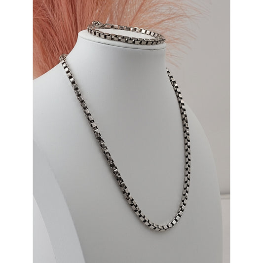 Tiffany & Co. Silver Box Link Venetian Chain Bracelet 7.5" & Necklace 16.5” Set