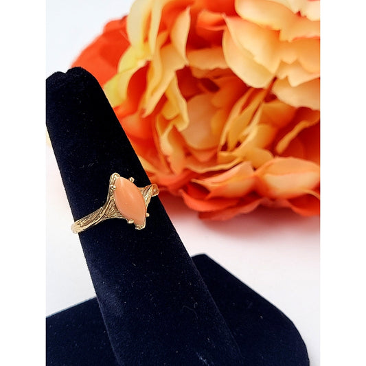 VTG 10K Yellow Gold Ring with Center Coral Stone Size 6