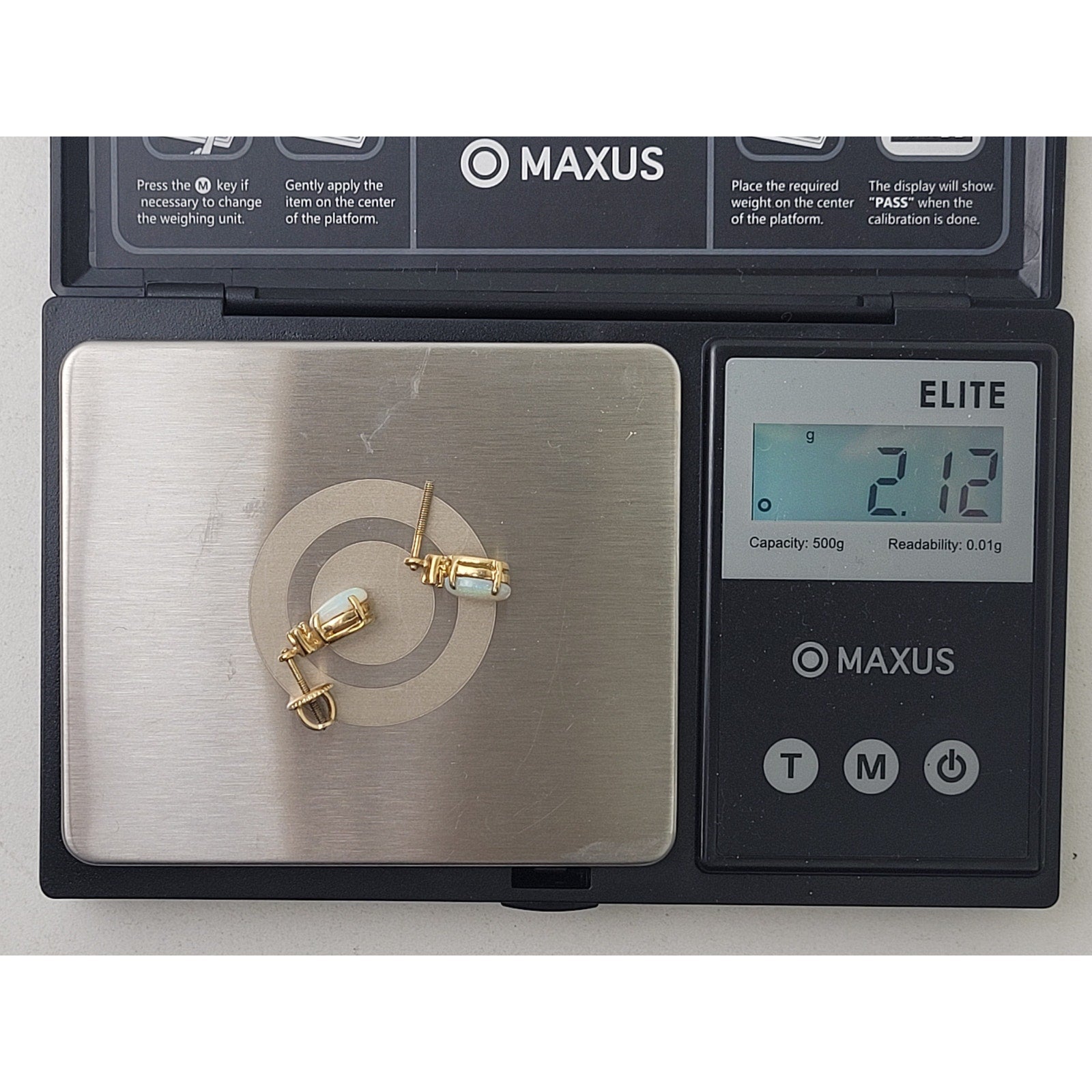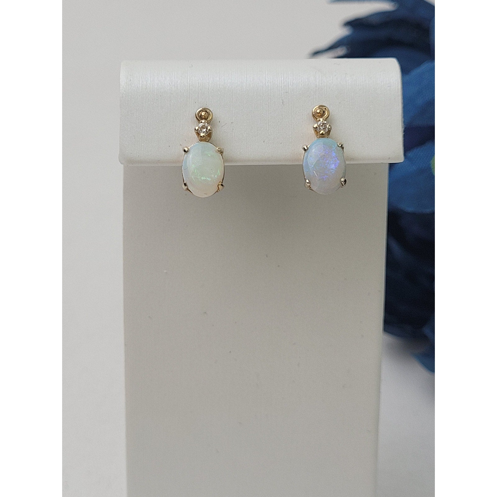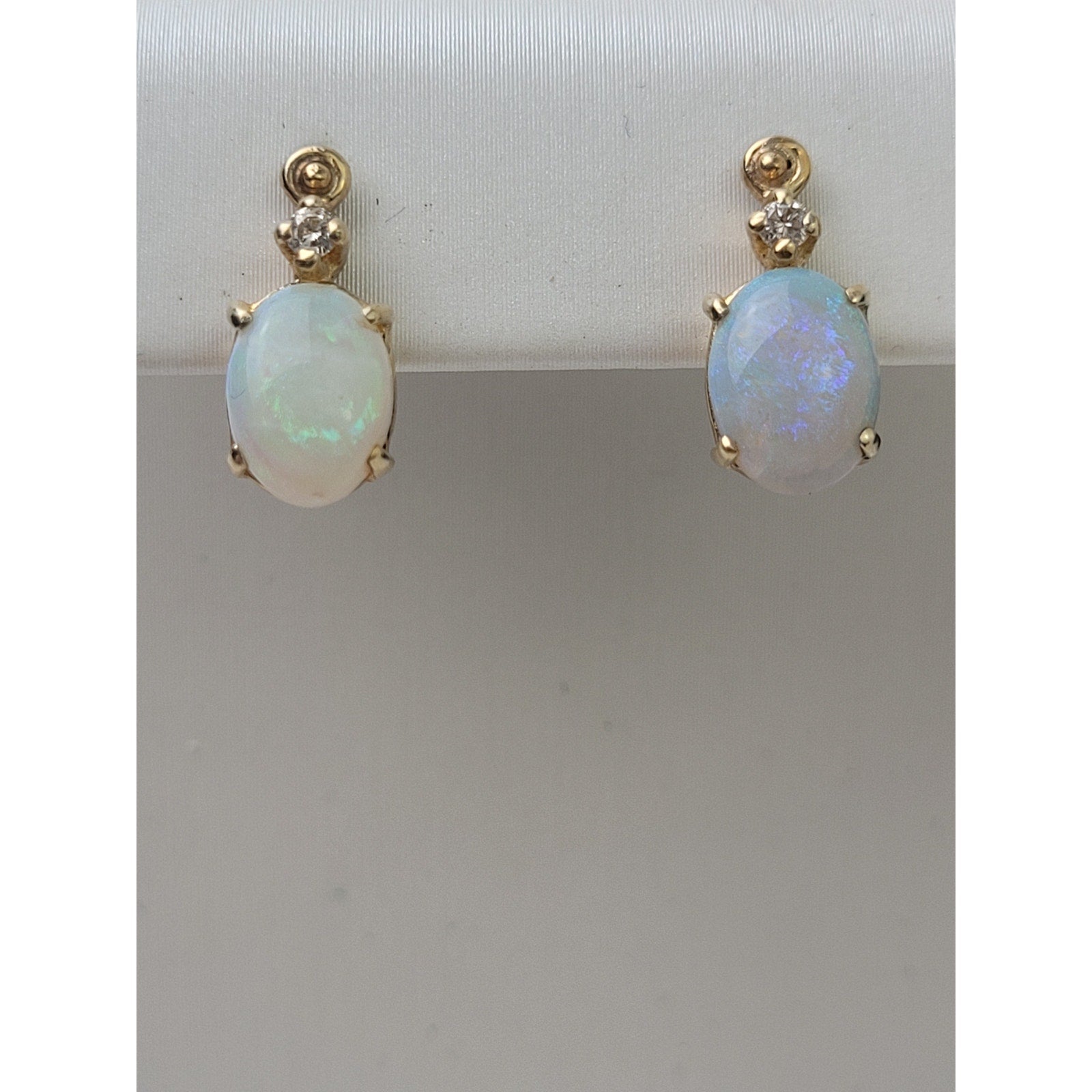 14K Gold Natural Opal & Diamond Earrings w Screw Back | 2.12 grams