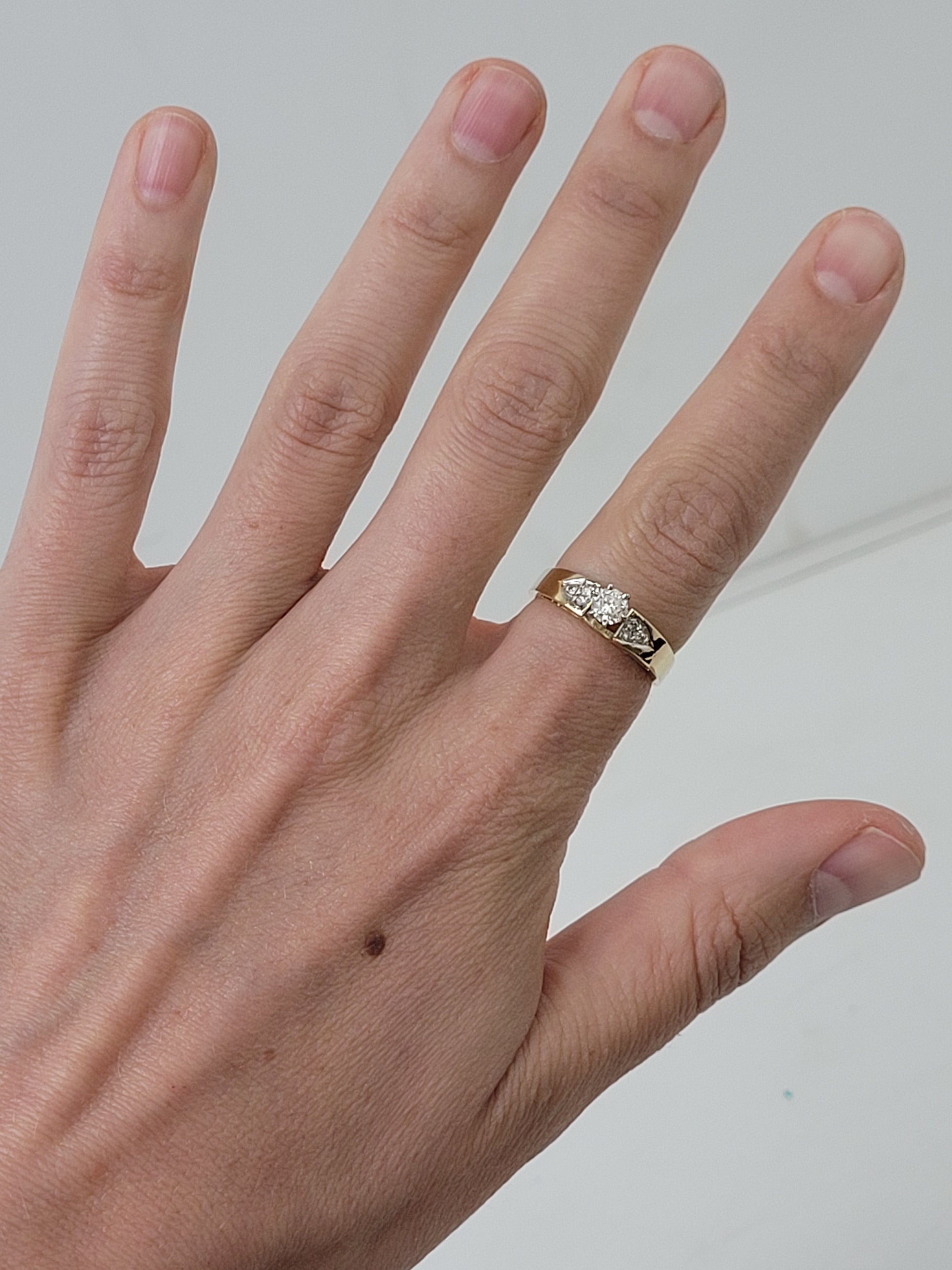 14K Gold Ring with Simulated Diamonds Sz 7.5