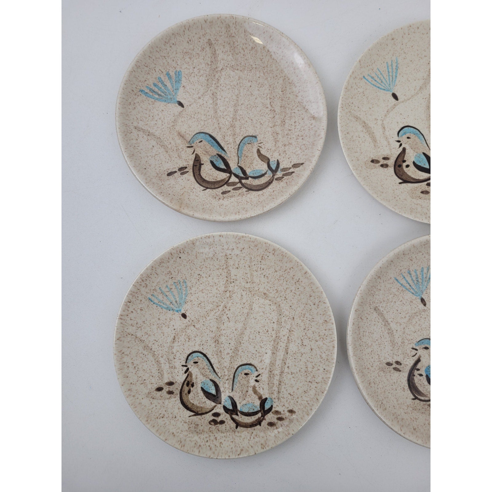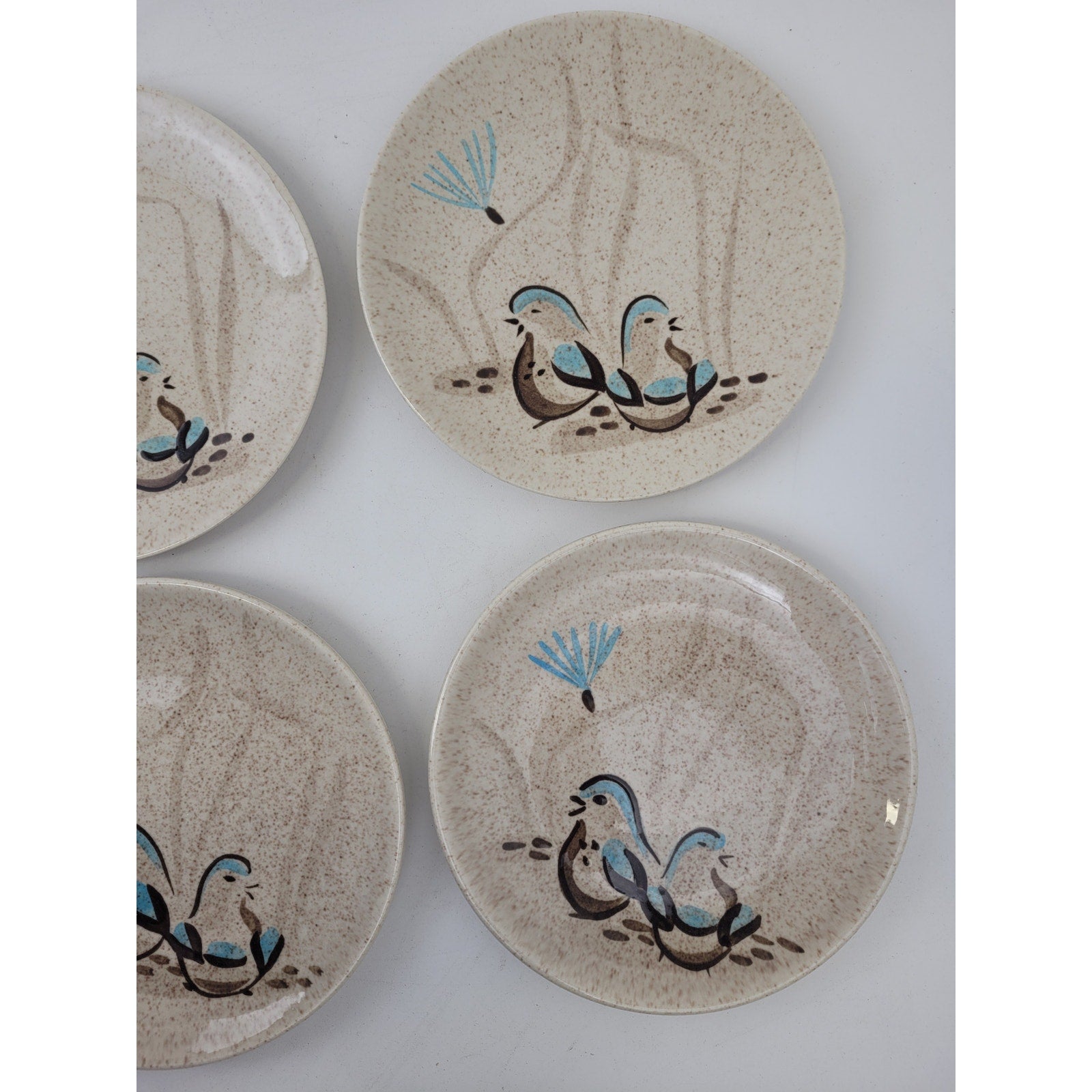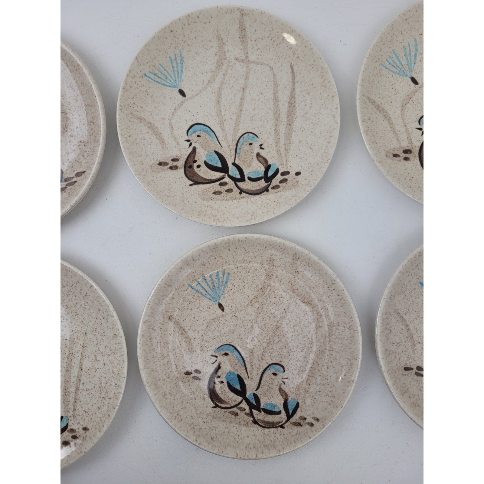 1950s MCM Red Wing Pottery "Bob White" Set of 6 Bread Plates EUC
