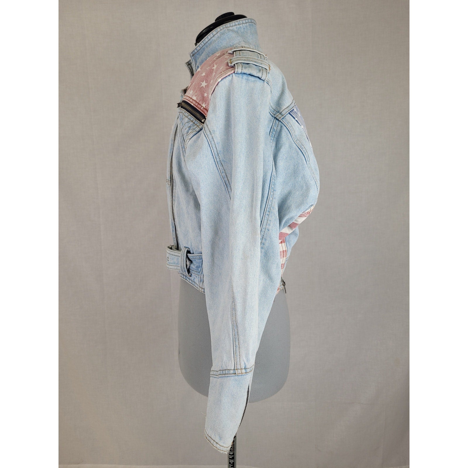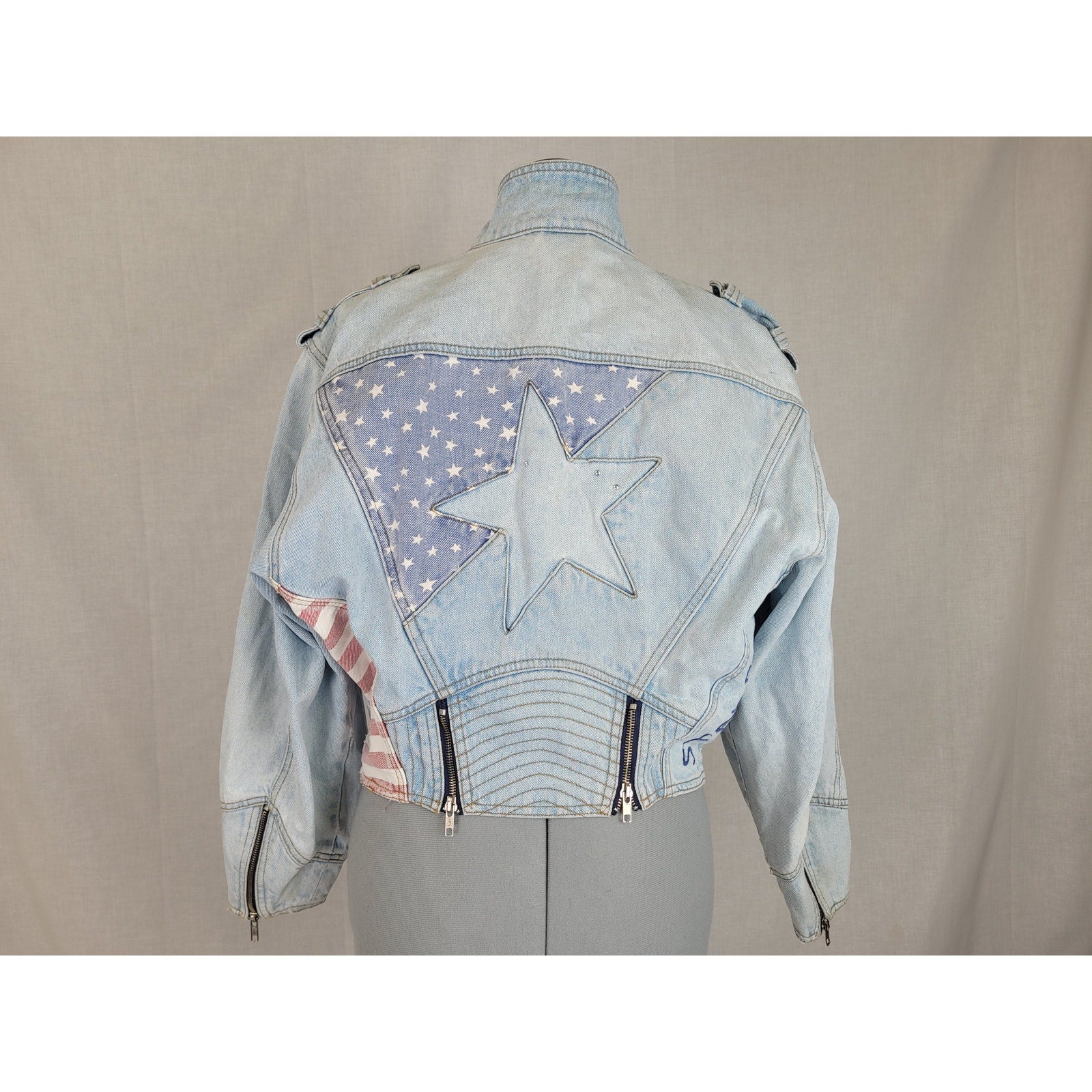 1980s VTG Cropped Denim Moto Jacket Stars Stripes Sz S/M