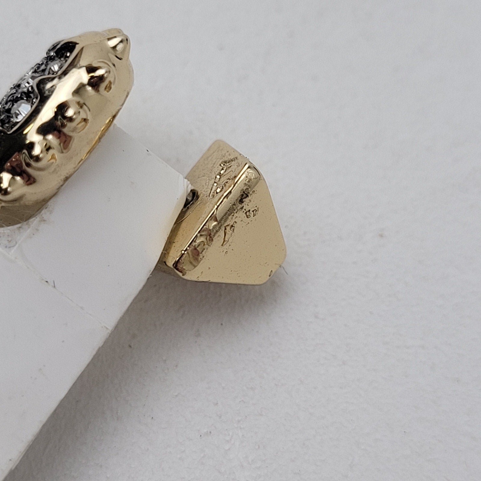 Funky Lucite earrings accented with gold tone metal and rhinestones. The earring backs are also a statement in the shape of 3D diamonds. One of the earring backs has some light distress on one side. Please see photos.
