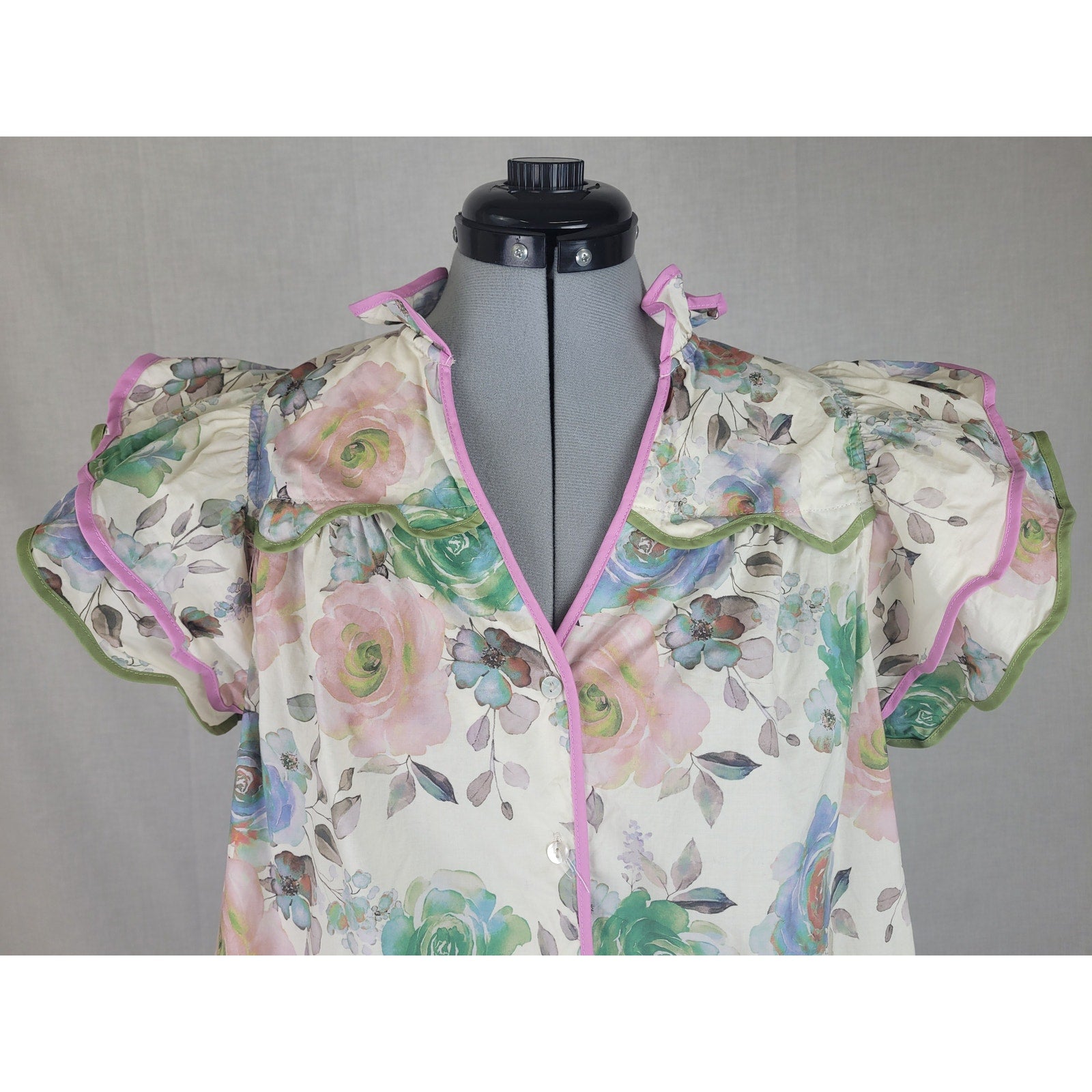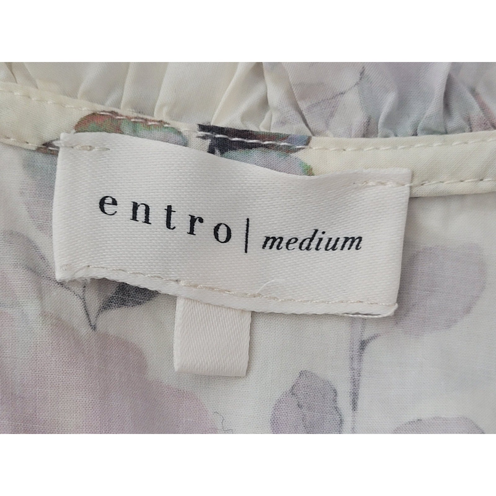 Anthropologie Entro Double Shoulder Ruffle Pastel Floral Print Shirt Sz M