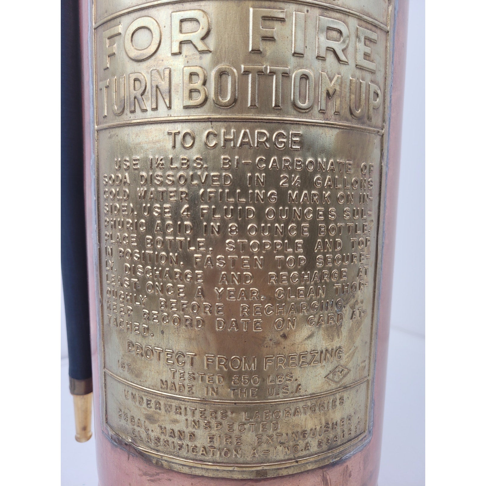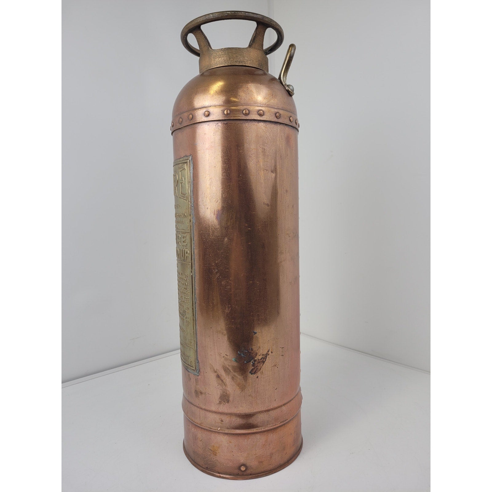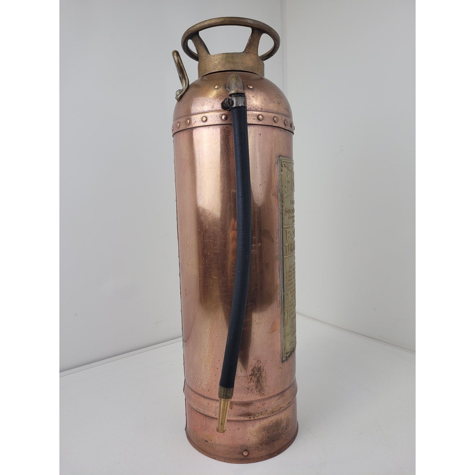 Crafted with a combination of copper and brass, this extinguisher is not only a unique décor item but also a tangible piece of firefighting history.