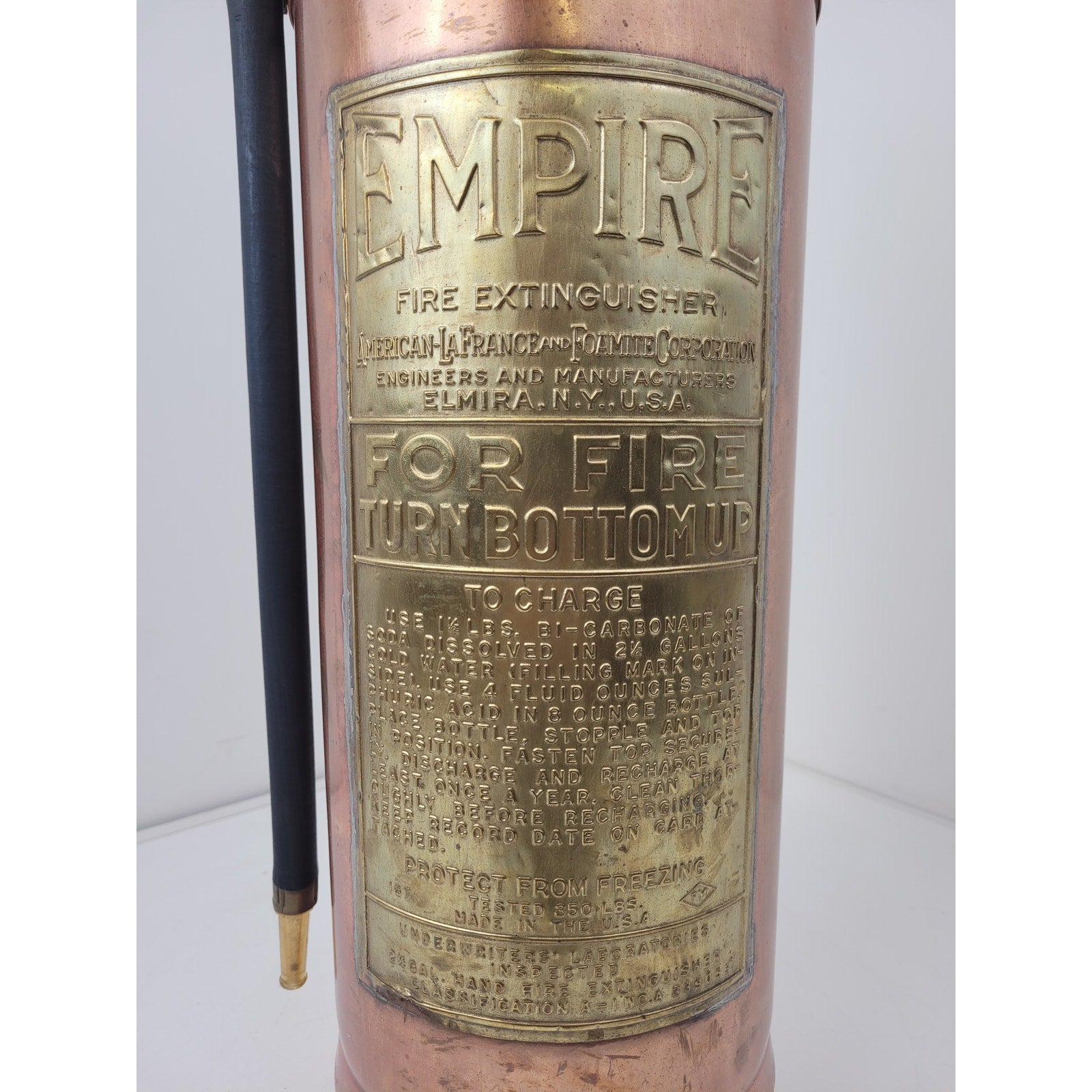 Step back in time with this stunning vintage "EMPIRE- American La France" fire extinguisher! A true piece of Americana, this antique fire suppression device dates back to the early 20th century (1910s-1920s).