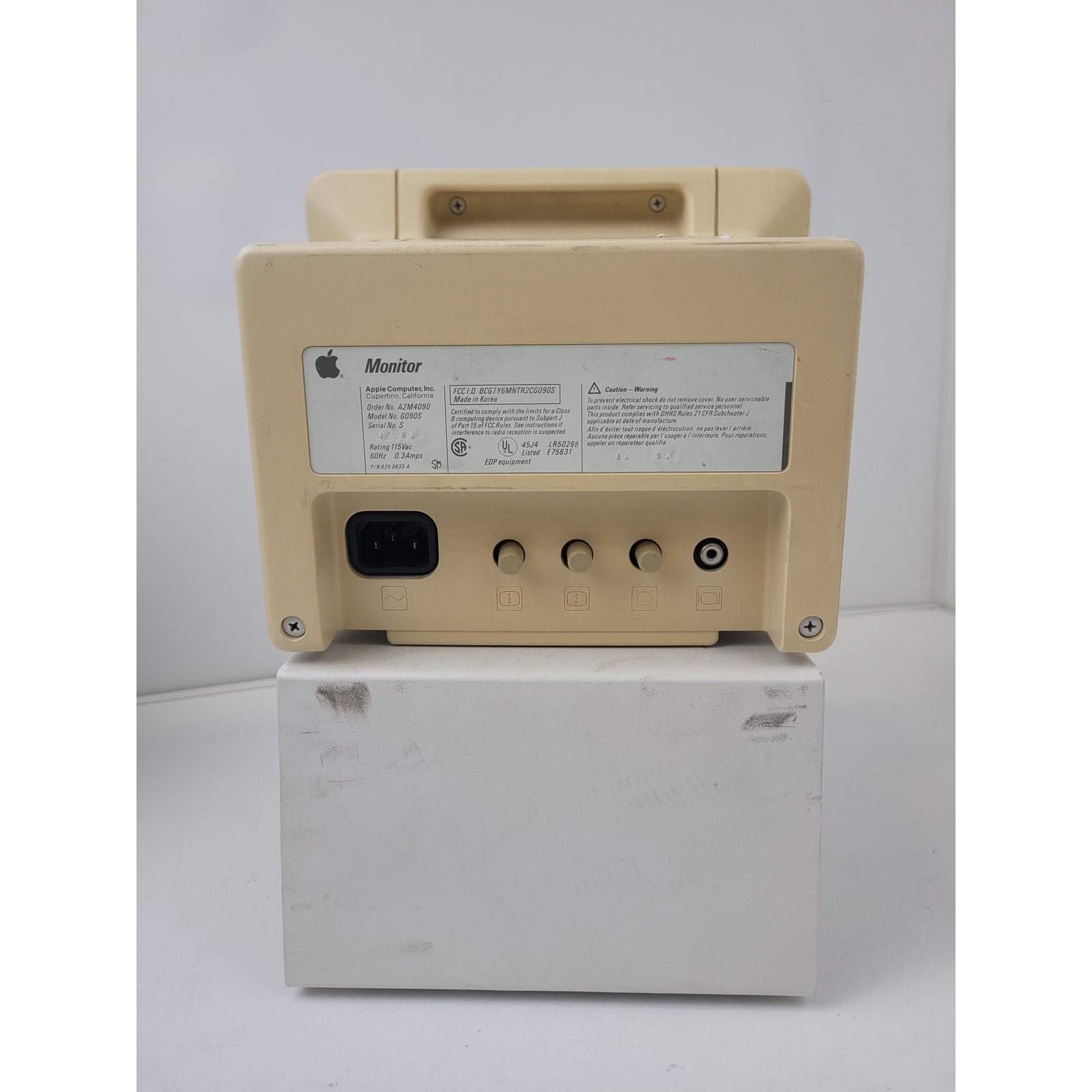 For sale is a vintage Apple computer that powers on. While no other testing has been done, it includes the monitor, keyboard, a mouse, external floppy drive, and accessories. The person who donated this item expressed the computer still works, but we cannot guarantee its functionality.