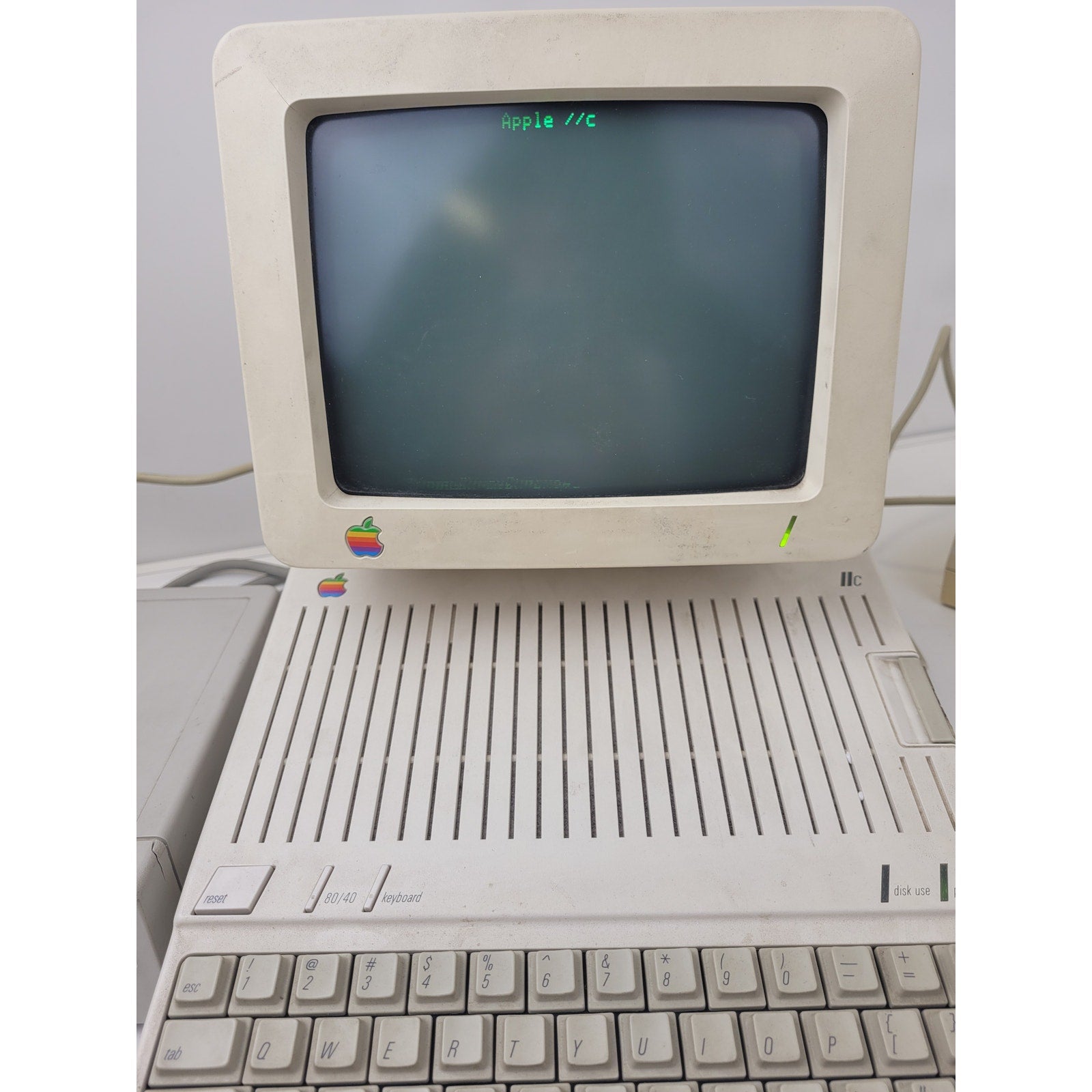 Apple IIc Computer Monitor w Keyboard, Mouse, & External Floppy Drive + Accessories