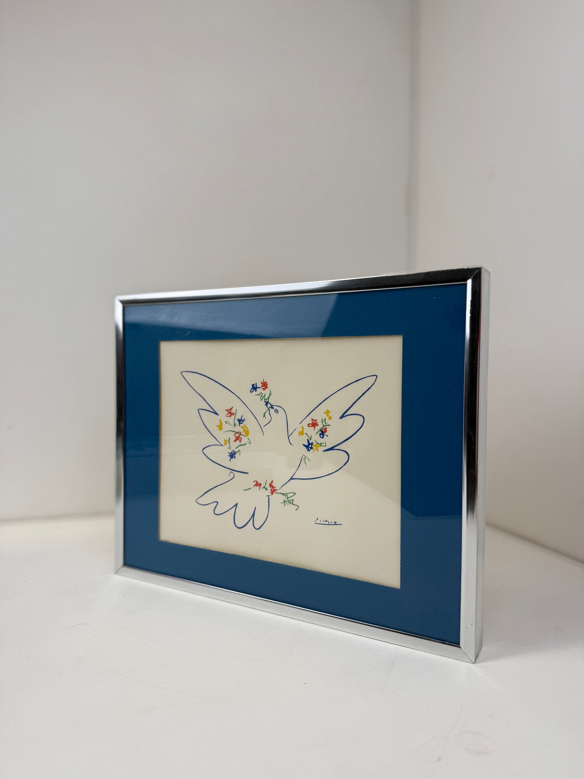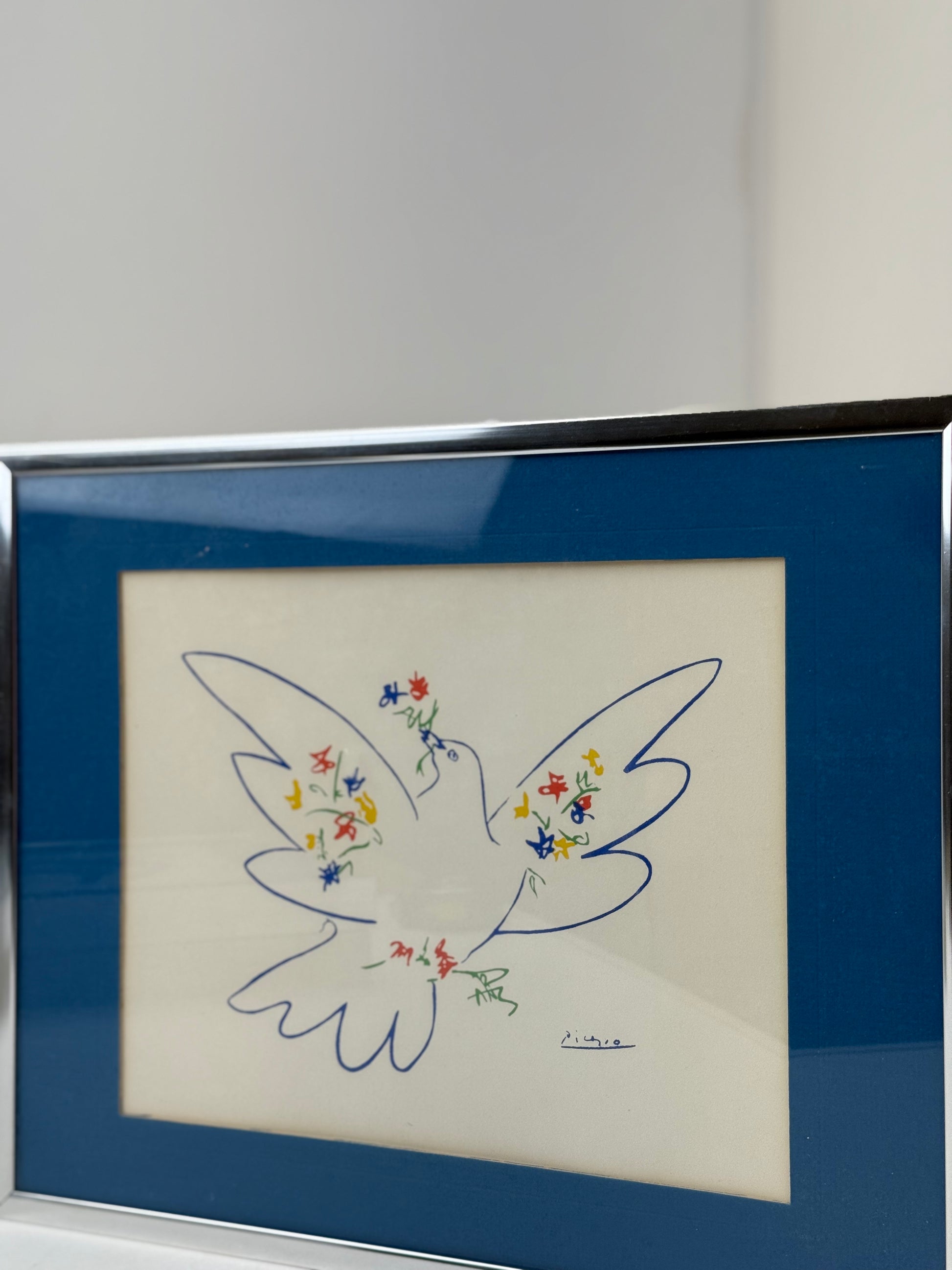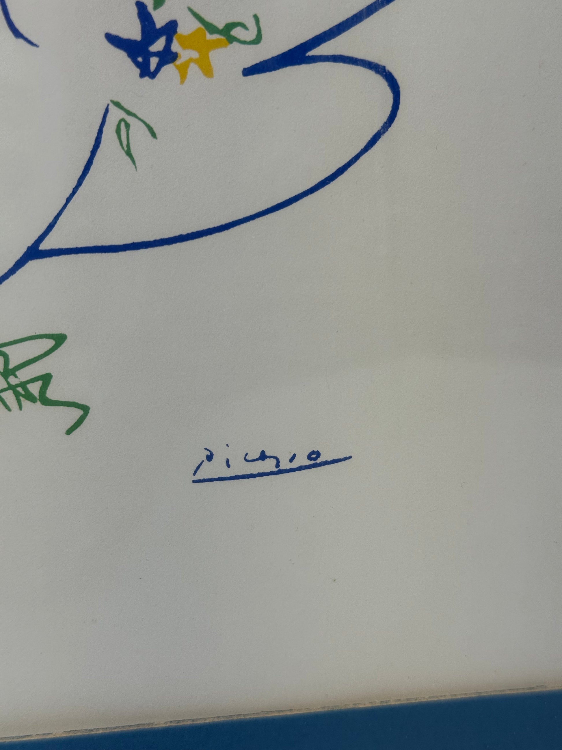Experience museum-quality art with this authentic Hans silkscreen reproduction featuring two iconic Picasso works: "HOMAGE TO THE SUN" and "DOVE III." These masterful reproductions capture the essence of Picasso's revolutionary artistic vision, showcasing the Spanish-French master's distinctive style that defined 20th-century art (1881-1973). Each silkscreen is meticulously crafted to preserve the vibrant colors and bold compositions of the originals, making this a significant addition to any serious art collection.