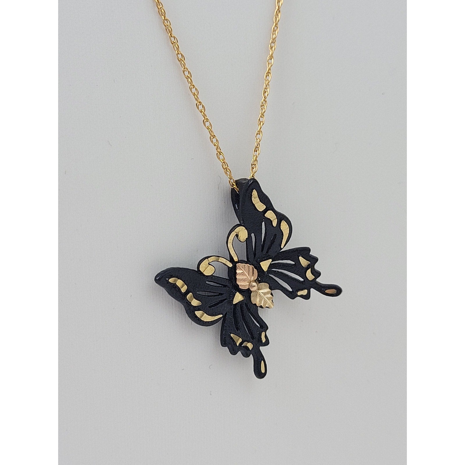 Black Hills Gold Powder Coated Butterfly Pendent on 14K GF Chain