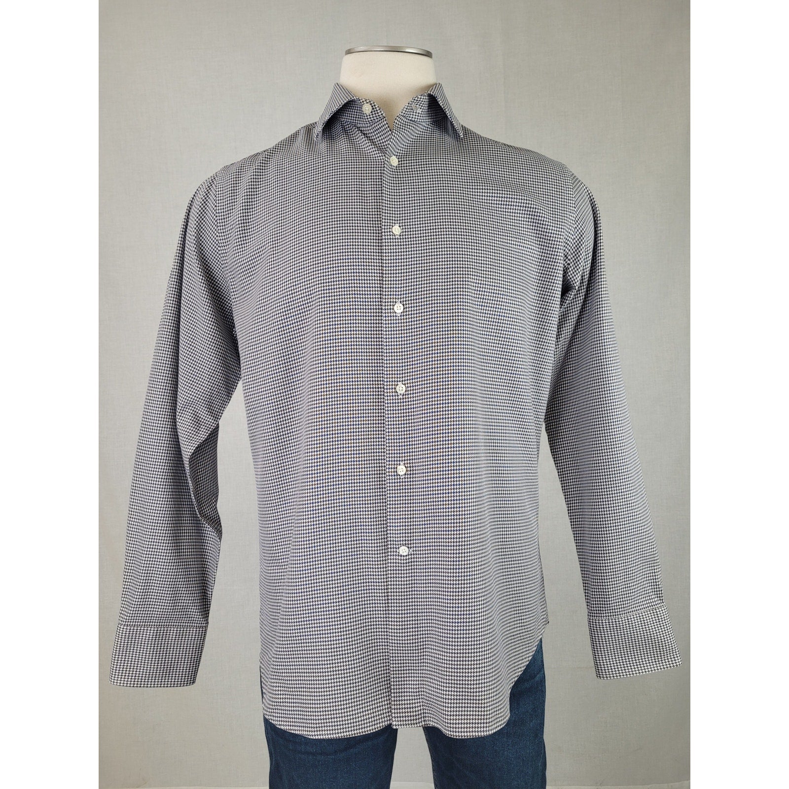 Canali Navy & Brown Houndstooth Pattern Italian Dress Shirt Men's Sz 42 16-1/2