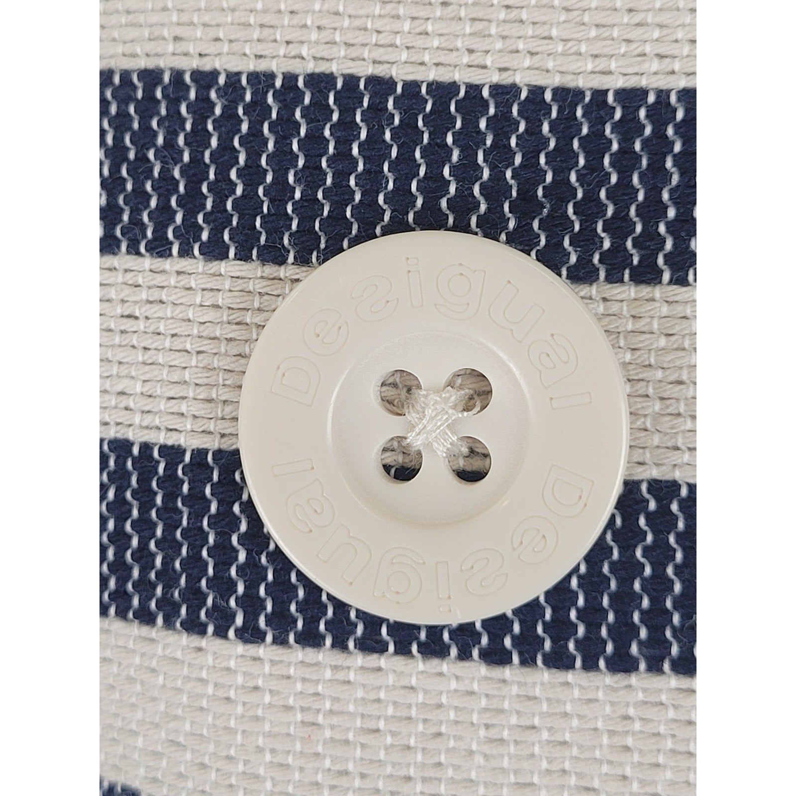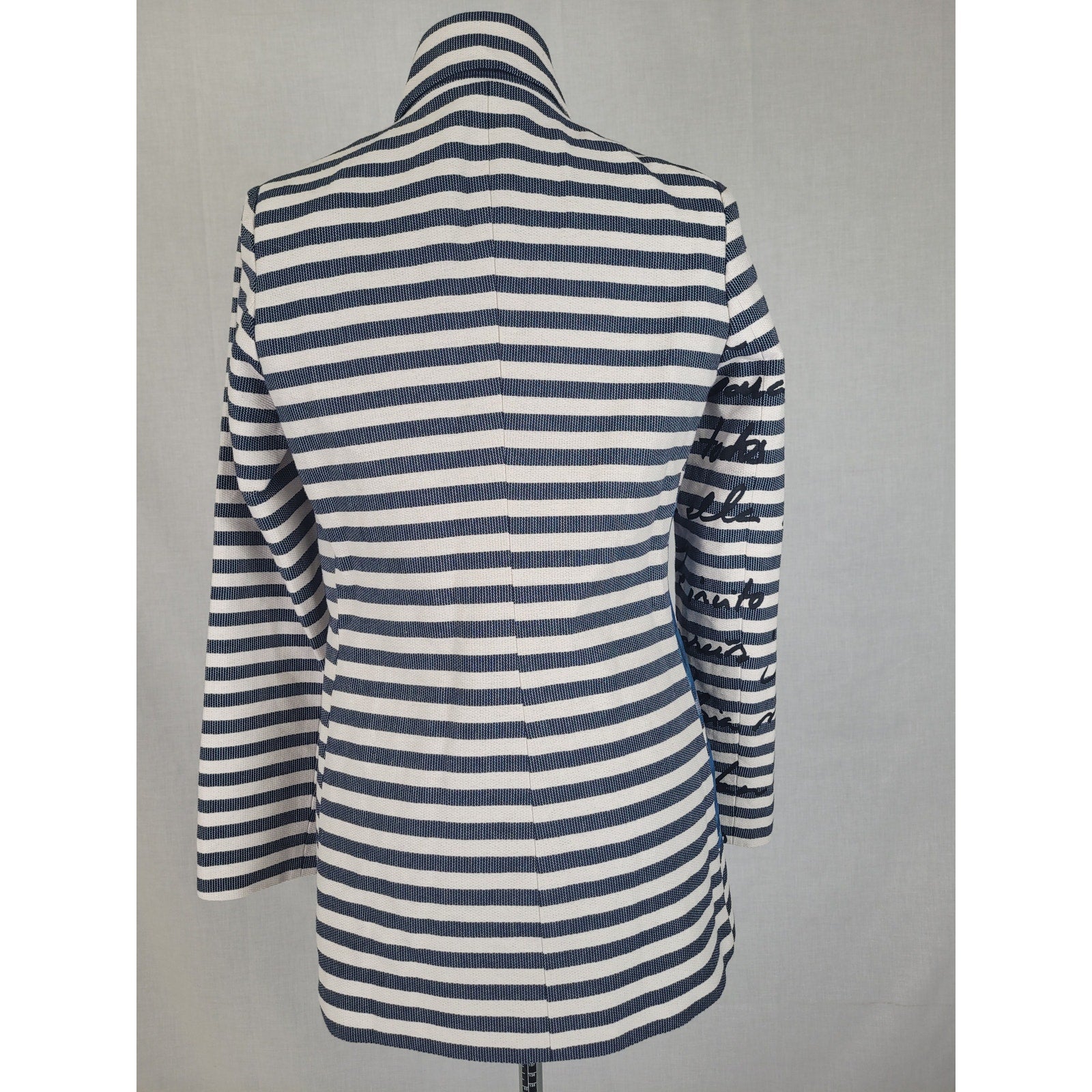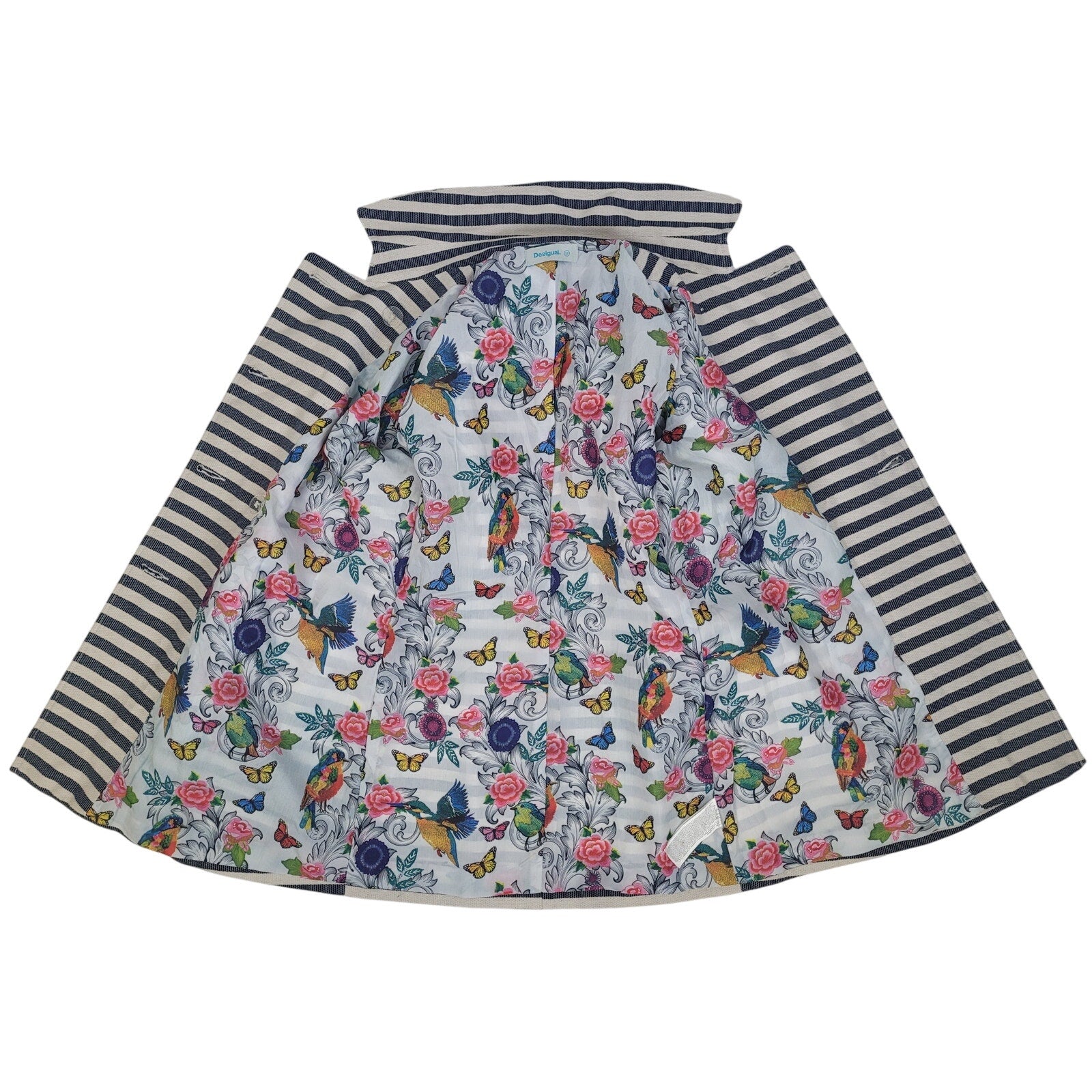 Desigual Mencia Blue & White Striped Double Breasted Blazer Floral Print Sz 38