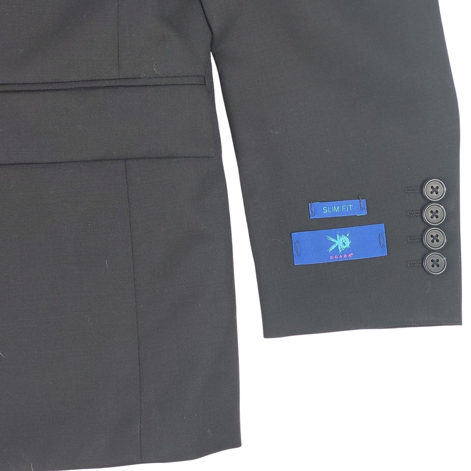 Egara 100% Wool Black Slim Cut Suit Sz 38S Jacket 31 X 28" Pant MSRP: $375 NWT