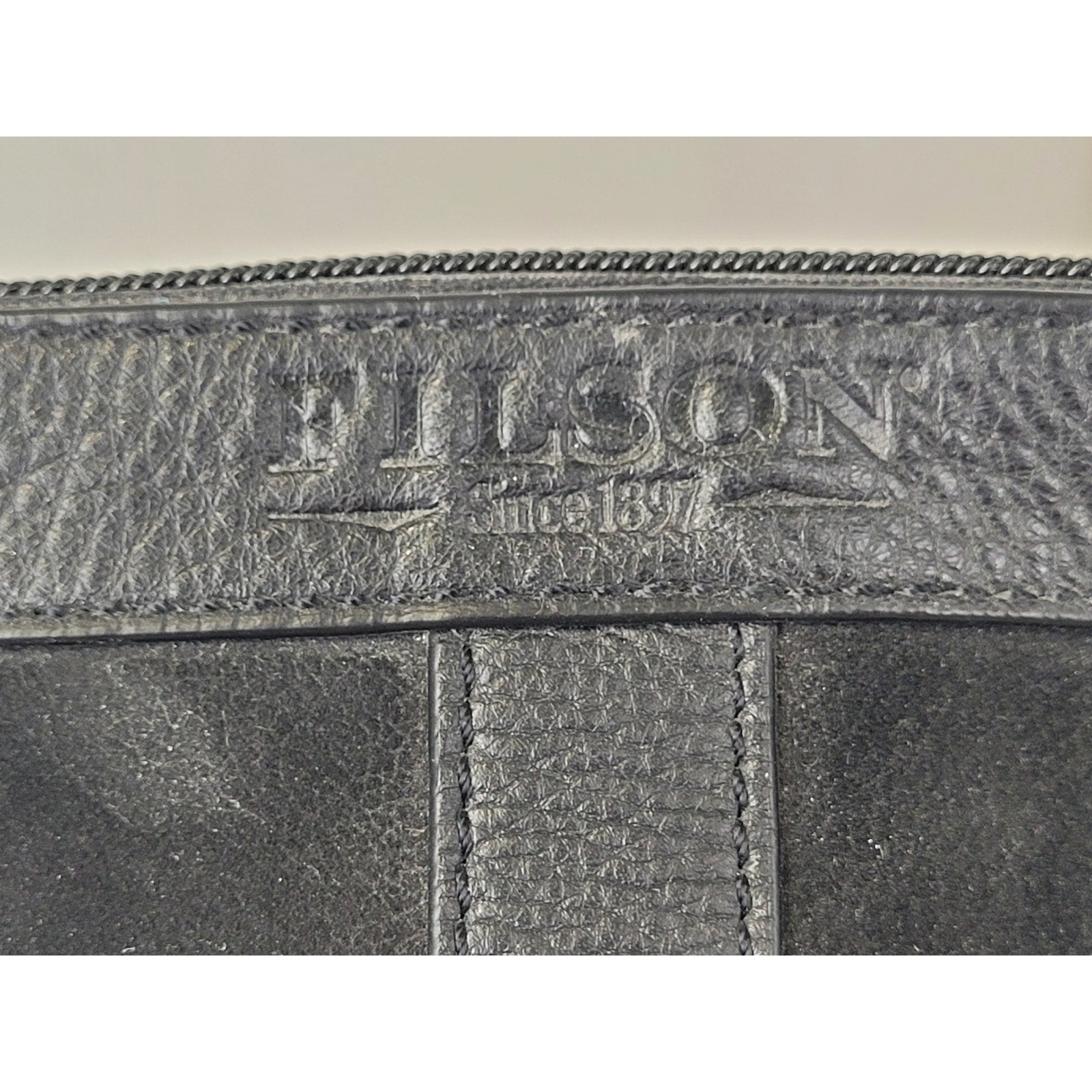 Filson Black Leather Tote Bag 17" x 15" x 8" EUC