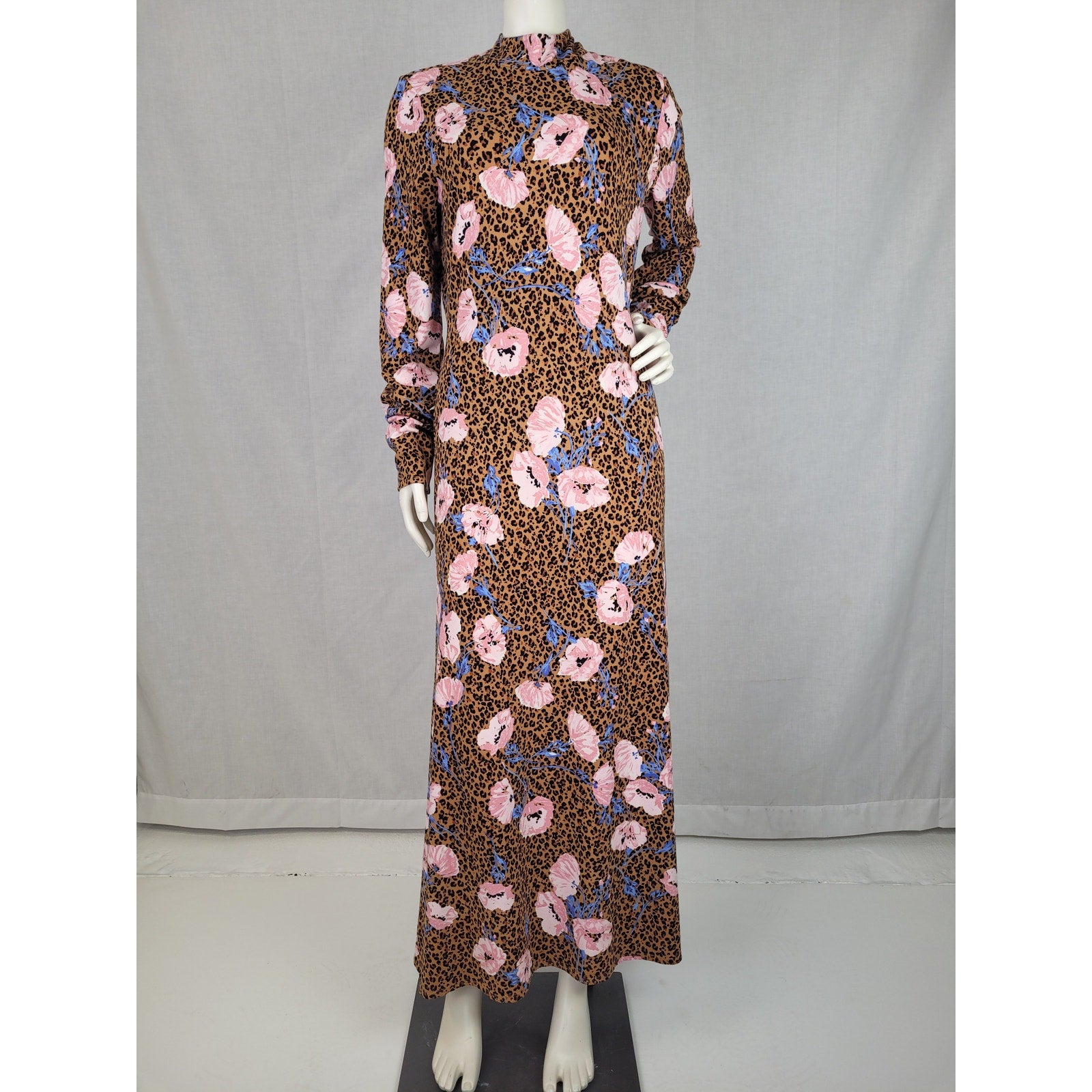 This Free People Retro Romance Molly Midi Dress in Leopard Brown Floral is perfect for many occasions. The dress features a stretchy fit, a mock neck with button closures, and a keyhole opening in the back. The leopard and floral print will keep you sweet but sassy! Size Small.