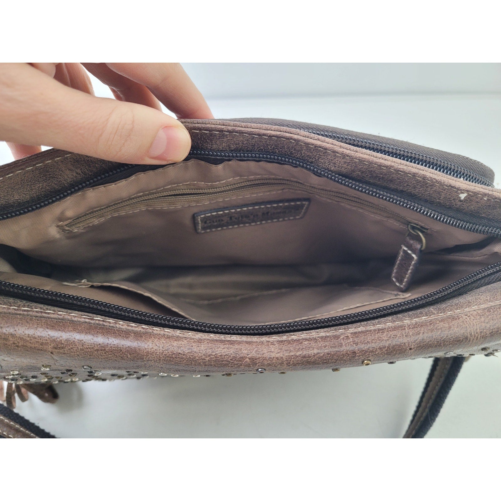 Gun Tote'n Mamas Buffalo Brown Leather Purse Adjustable Strap Made in USA