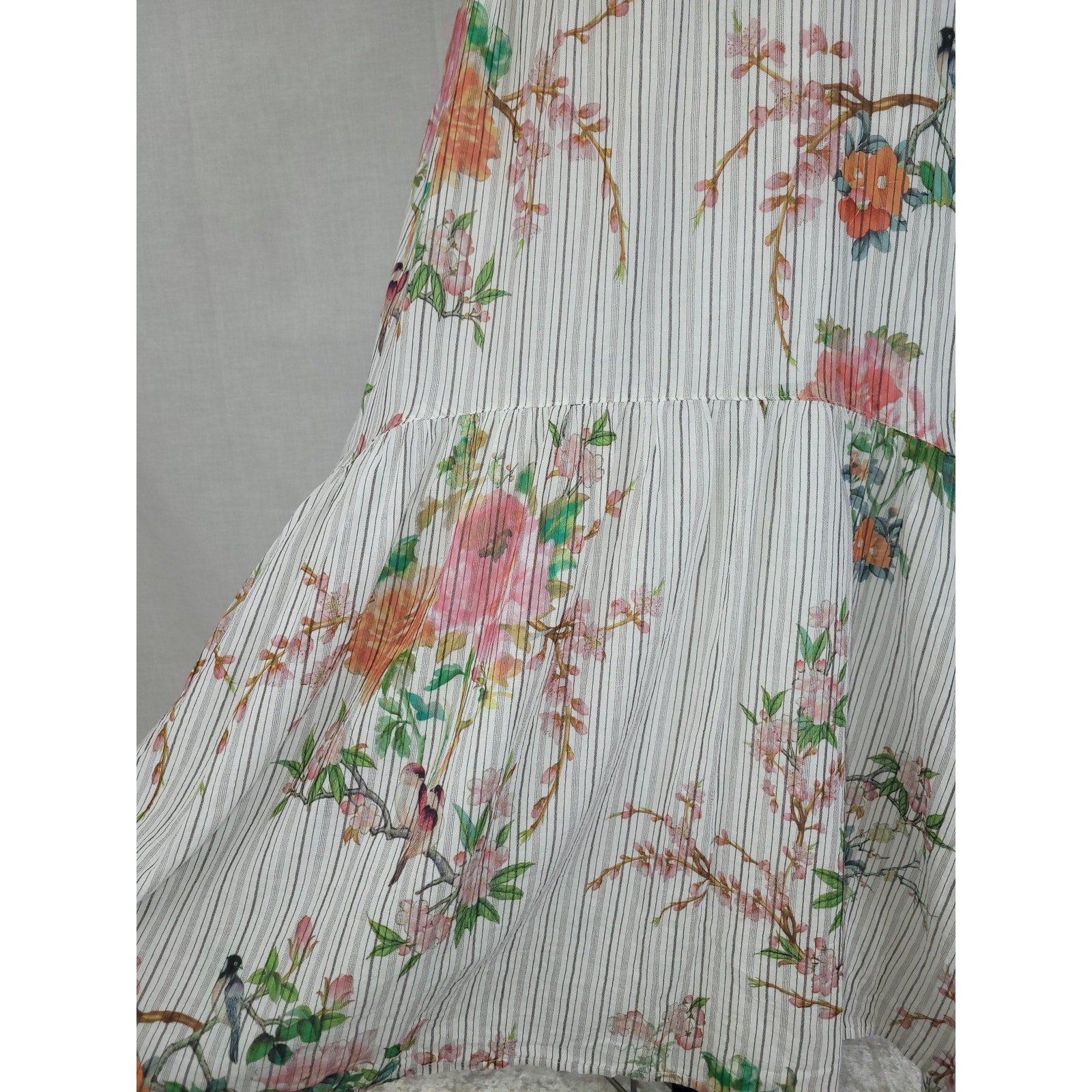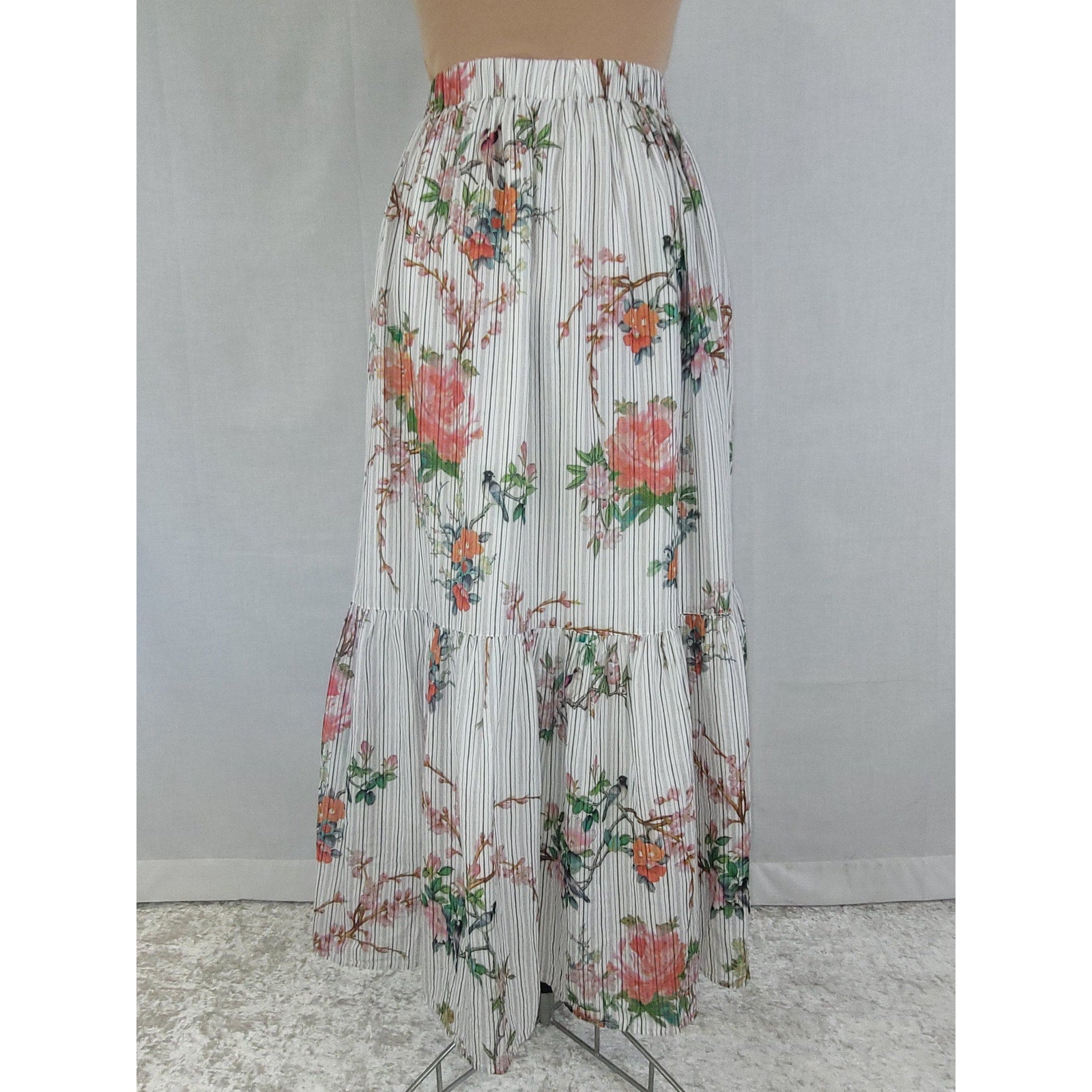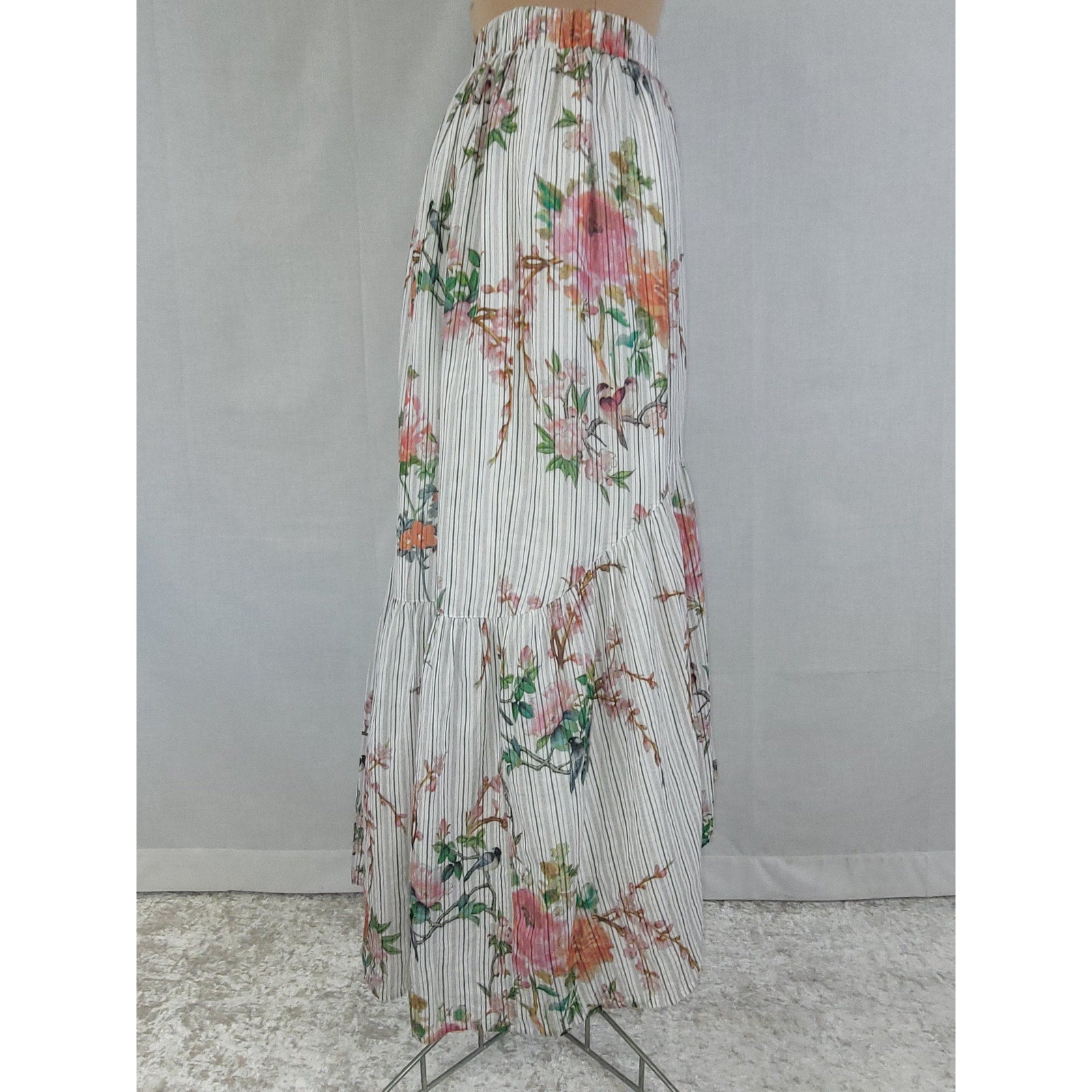 Johnny Was Colmar Prairie Maxi Skirt Light Lined Cotton Bird Print Sz Small