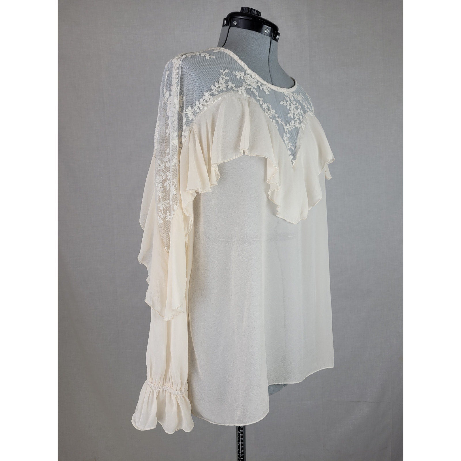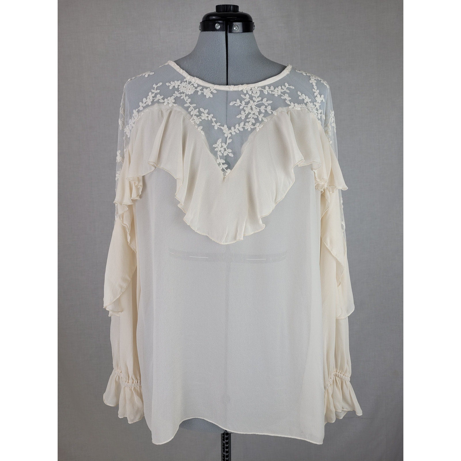 Johnny Was Romantic Cream Ruffled Lace Blouse Size Medium