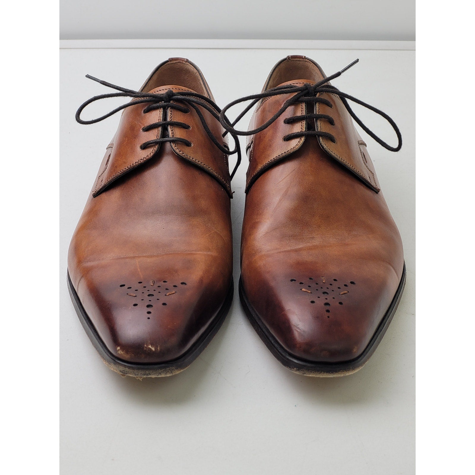Magnanni Reko Tobacco Leather Medallion Toe Oxford Shoes Men's Sz 41 (8)