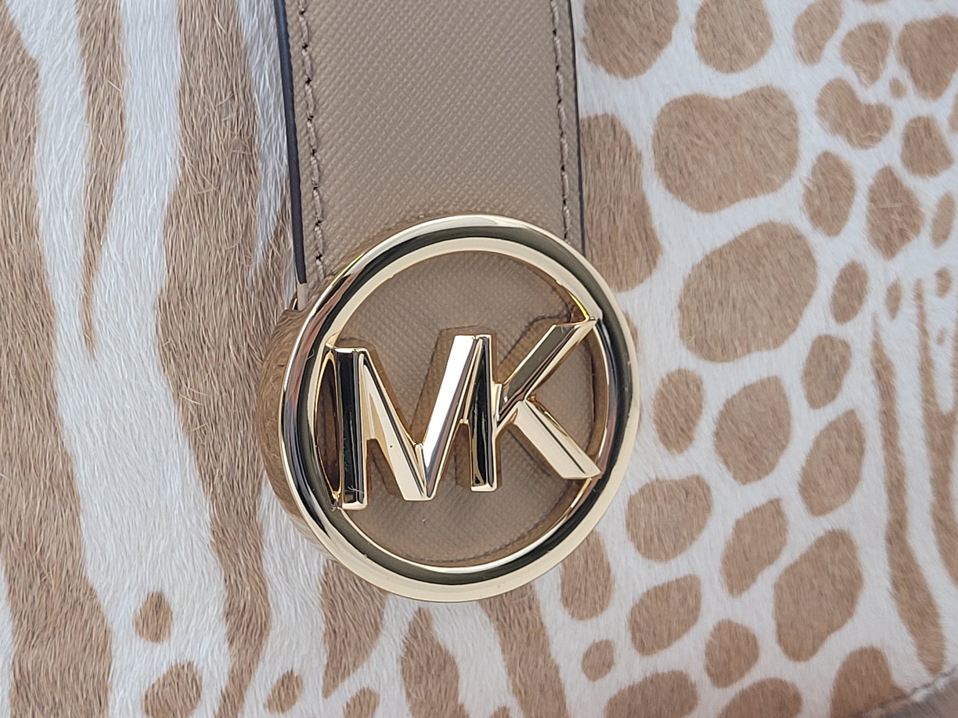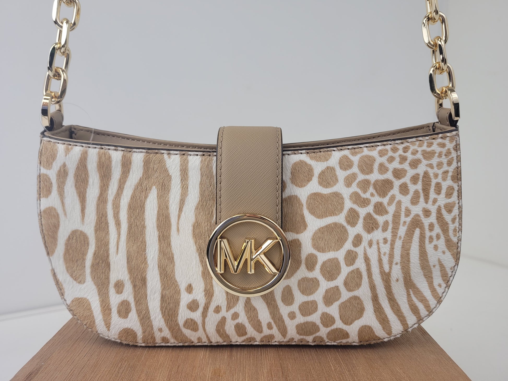 Michael Kors Carmen Calf Hair Shoulder Bag with Gold Chain Strap Retail $448