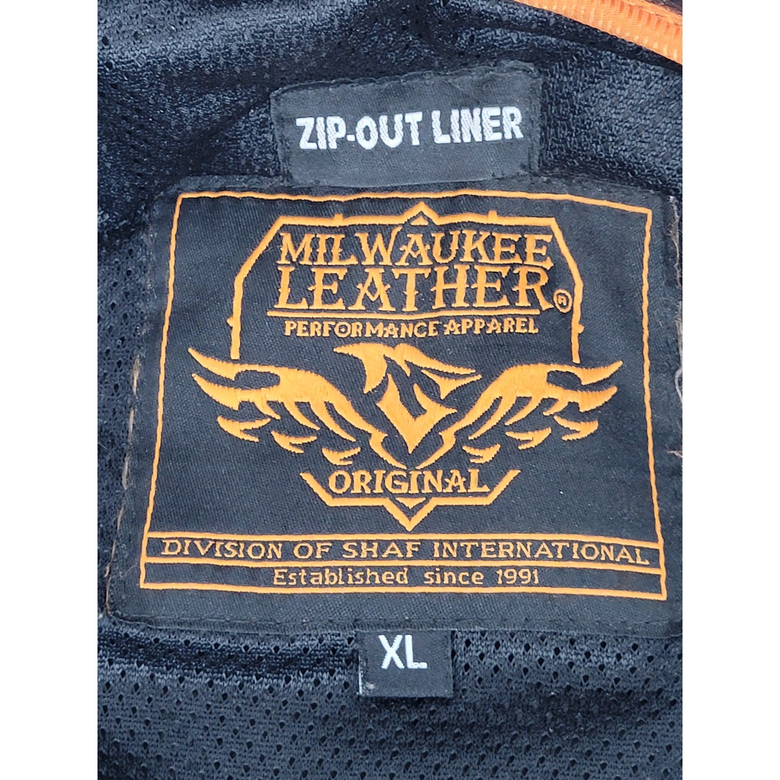 Get ready to ride in style with this Milwaukee Leather black motorcycle jacket! In excellent condition, this heavy-duty jacket is perfect for any biker looking for protection and a classic look.