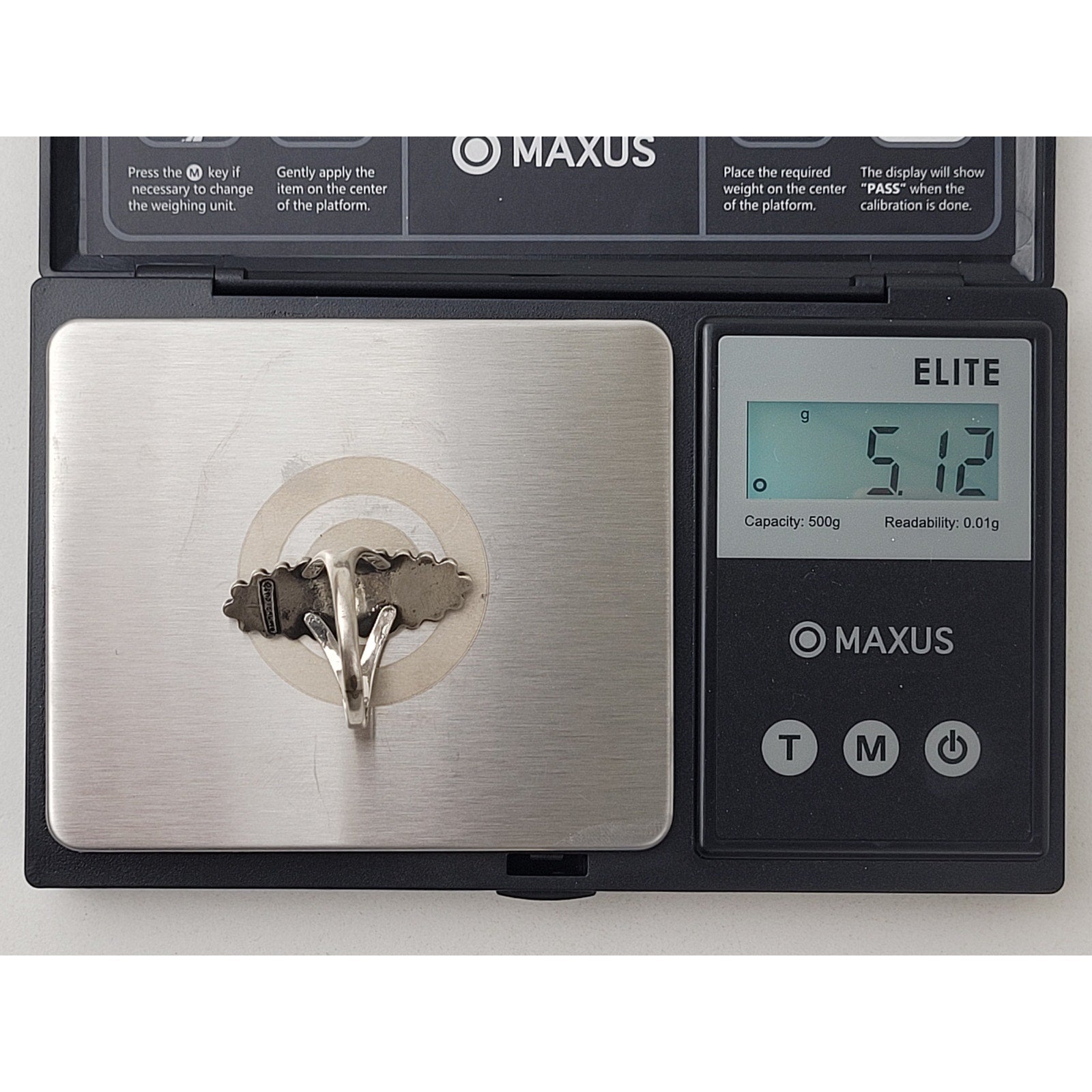 Add a touch of Southwestern charm to your jewelry collection with this stunning Navajo sterling silver turquoise ring! This ring is a size 8 1/4 and weighs 5.12 grams. This piece features a beautiful, genuine turquoise stone set in a solid sterling silver band.