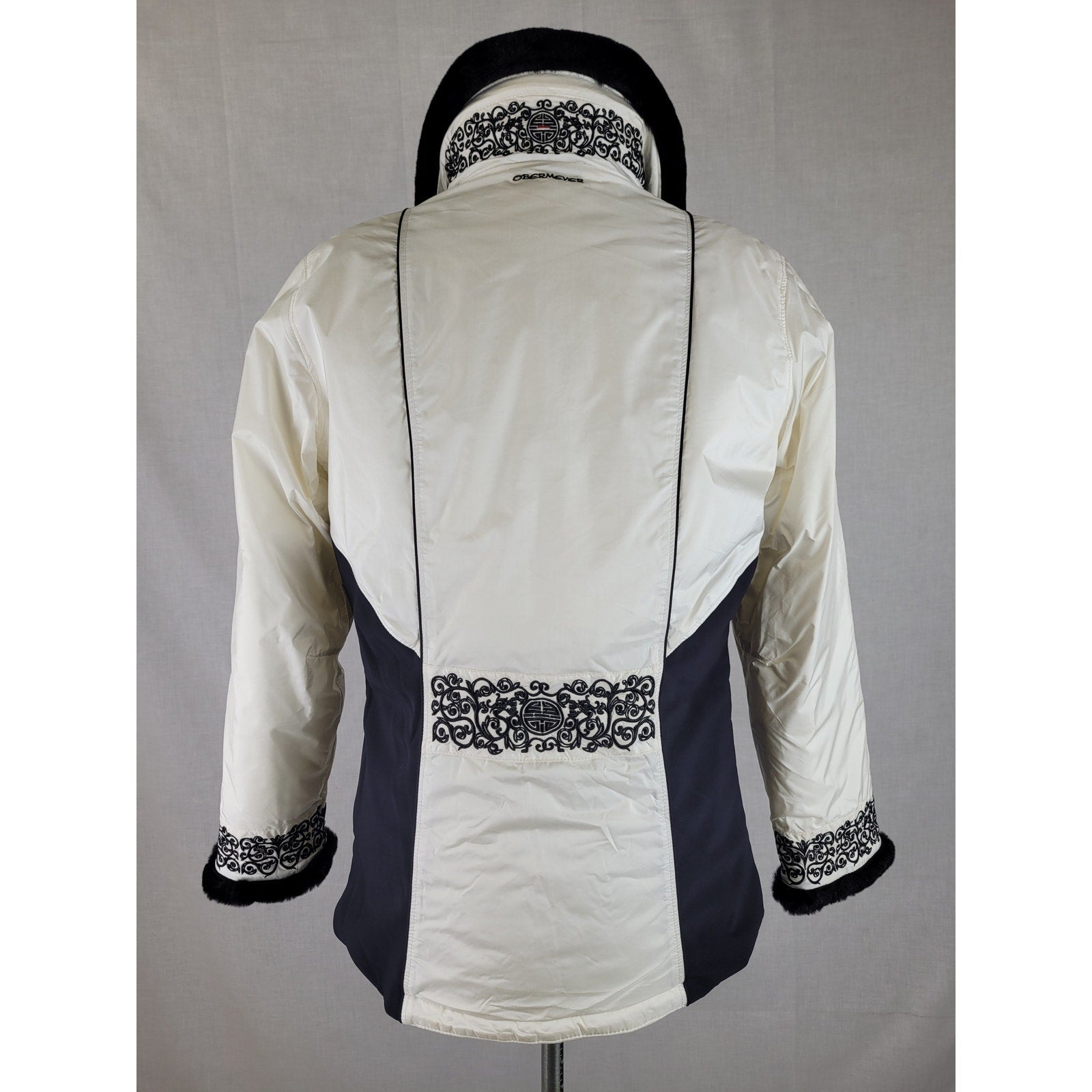 Fresh white ski jacket with faux fur black collar and embroidered cuffs. Obermeyer is known for their quality ski gear that lasts for generations. They have been dedicated to quality material science since their inception in 1947. This jacket is a women's size 10.