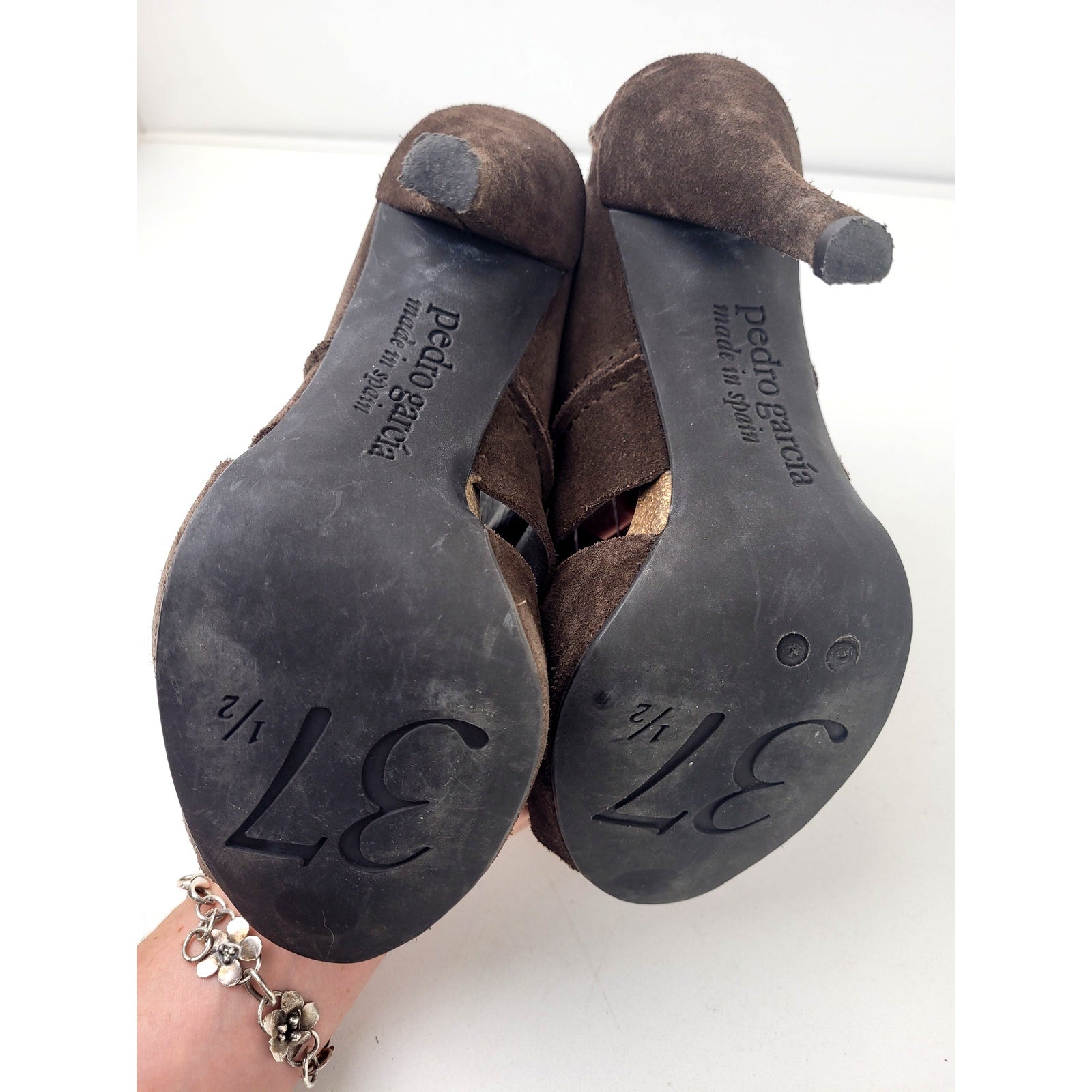 Pedro Garcia Bootie High Heels Brown Leather Suede Sz 37.5