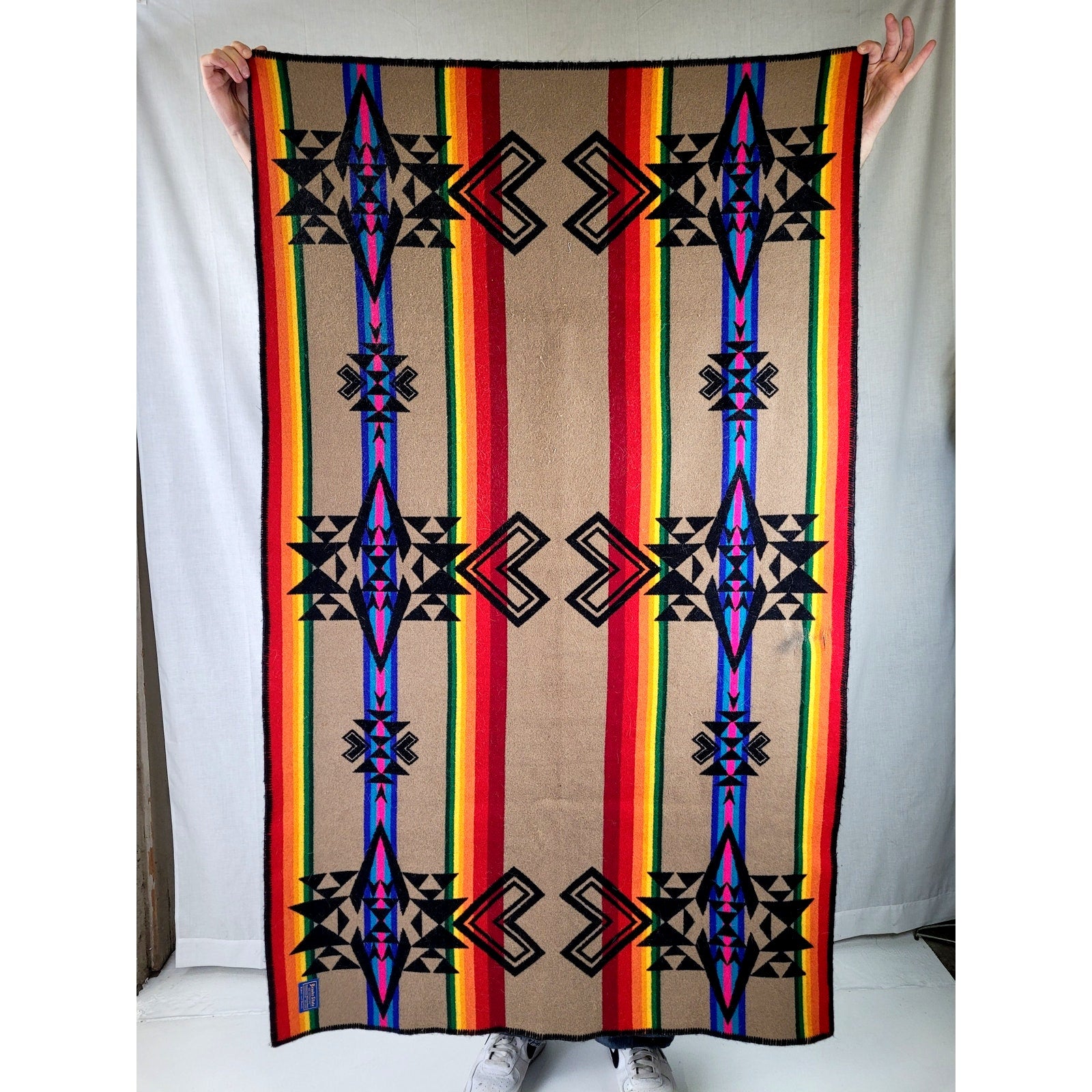 Enhance your style with this stunning Pendleton Beaver State reversible throw or shawl! Made from a luxurious wool and cotton blend, this shawl is soft, warm, and perfect for adding some Southwest flair to your wardrobe. Featuring a beautiful design, this throw or shawl measures 39" x 65", making it versatile enough to wear as a wrap or even display as a decorative piece in your home. The reversible design offers two distinct looks, allowing you to mix and match.