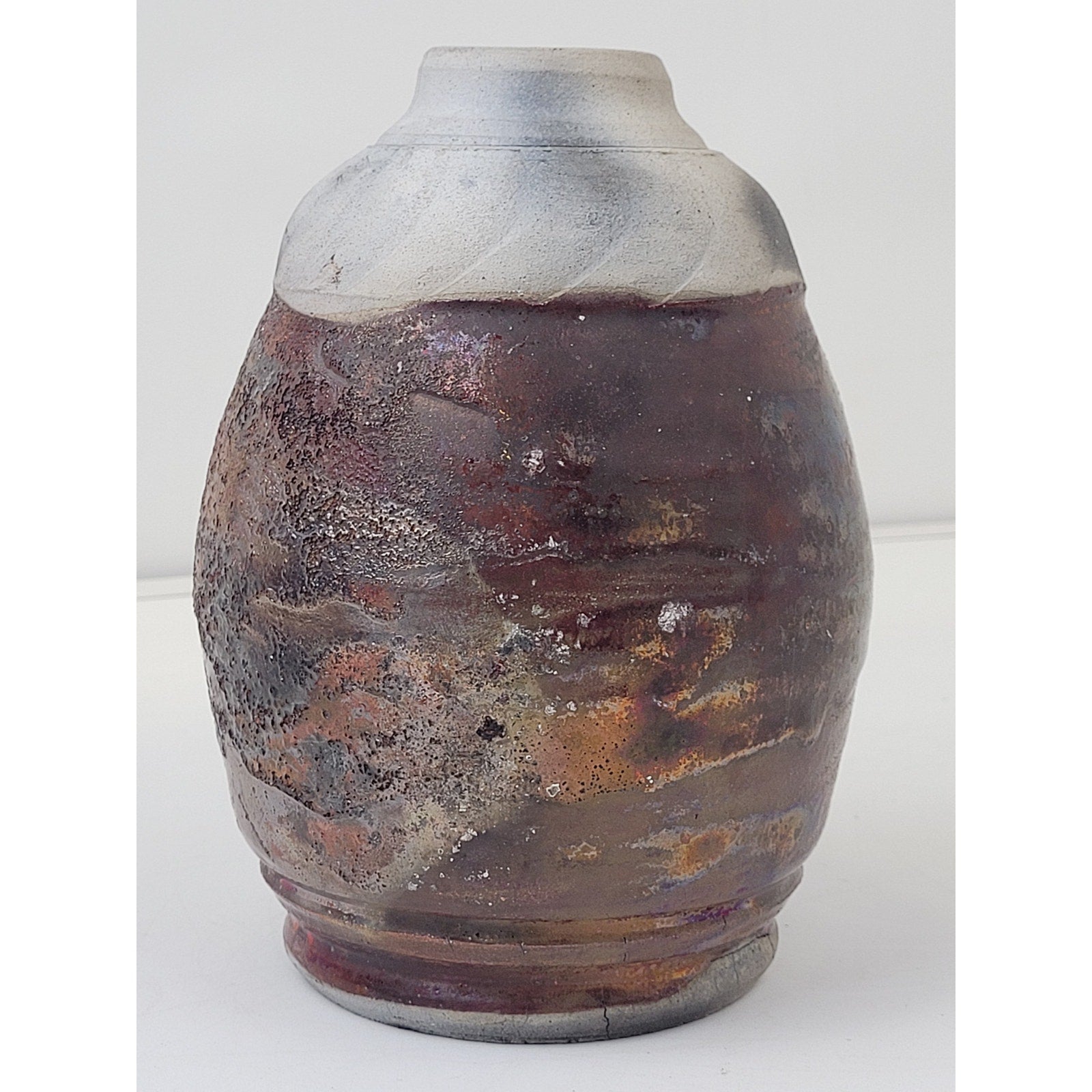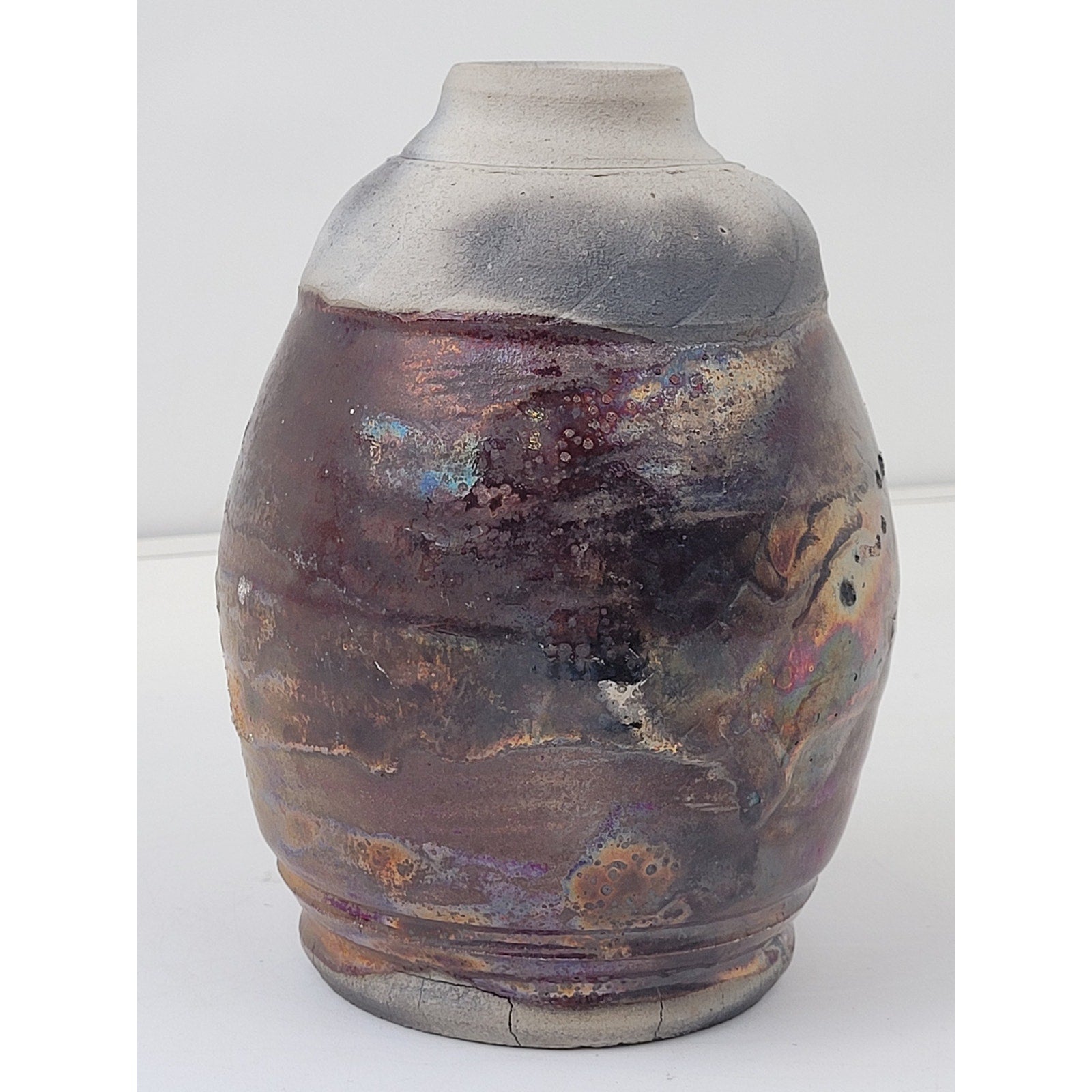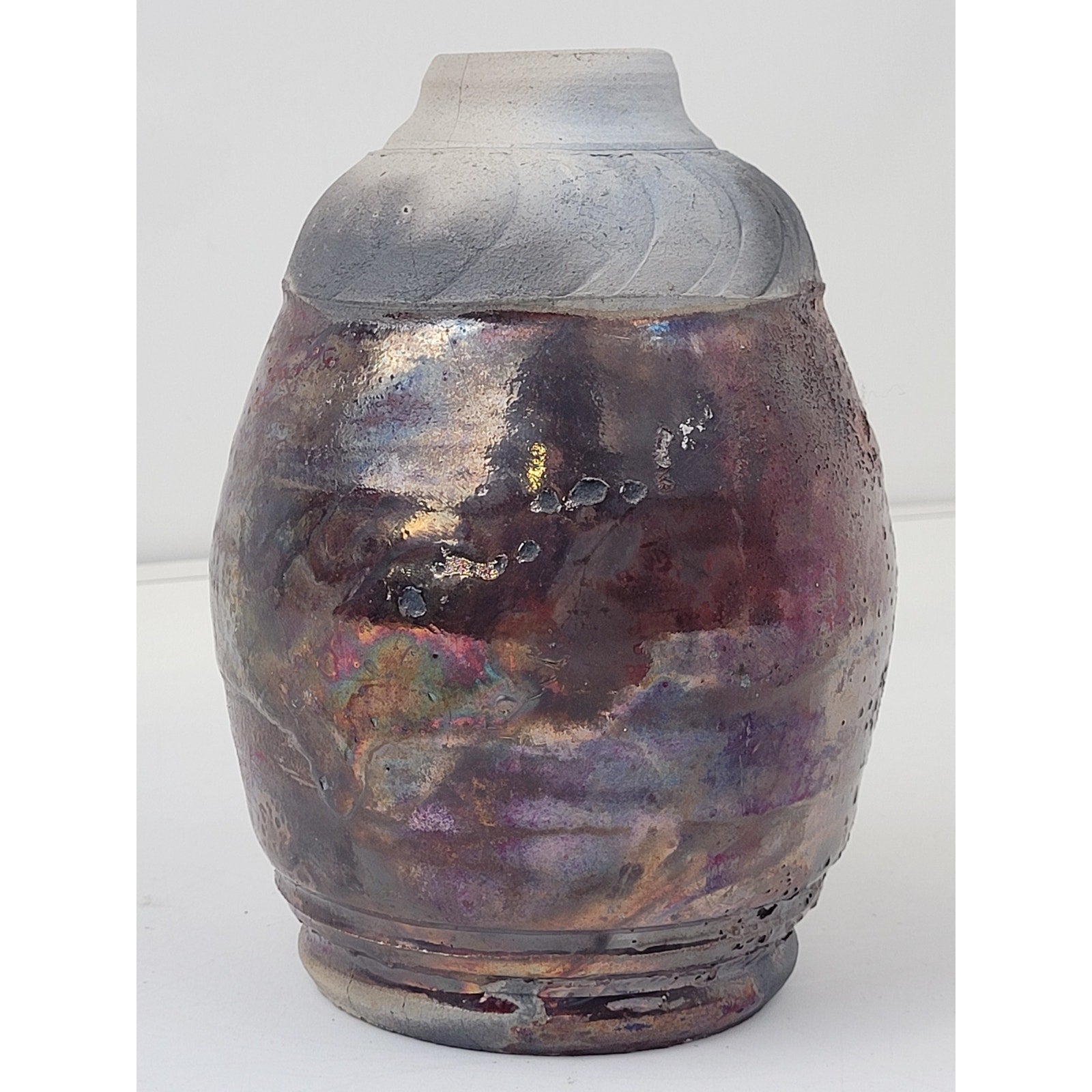 Raku Metallic Glaze Pottery Vase 8 1/4" Tall Unsigned