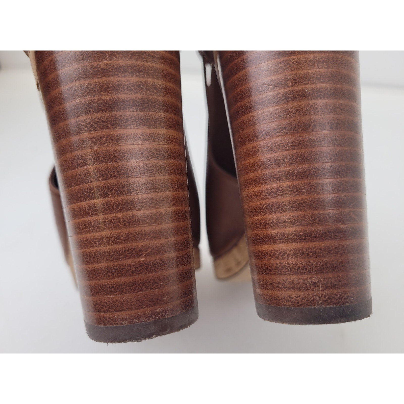 Ralph Lauren Fiana Polo Tan Cognac Leather Open Toe Booties Sz 9