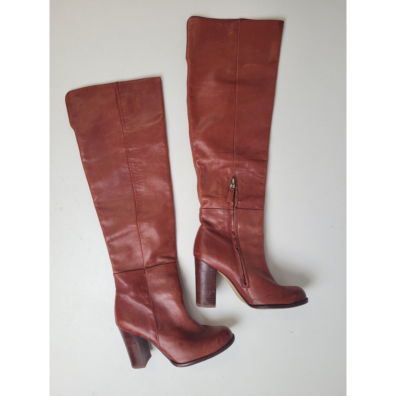 Sam Edelman Over the Knee Cognac Leather Tall Riding Heel Boots Sz 8