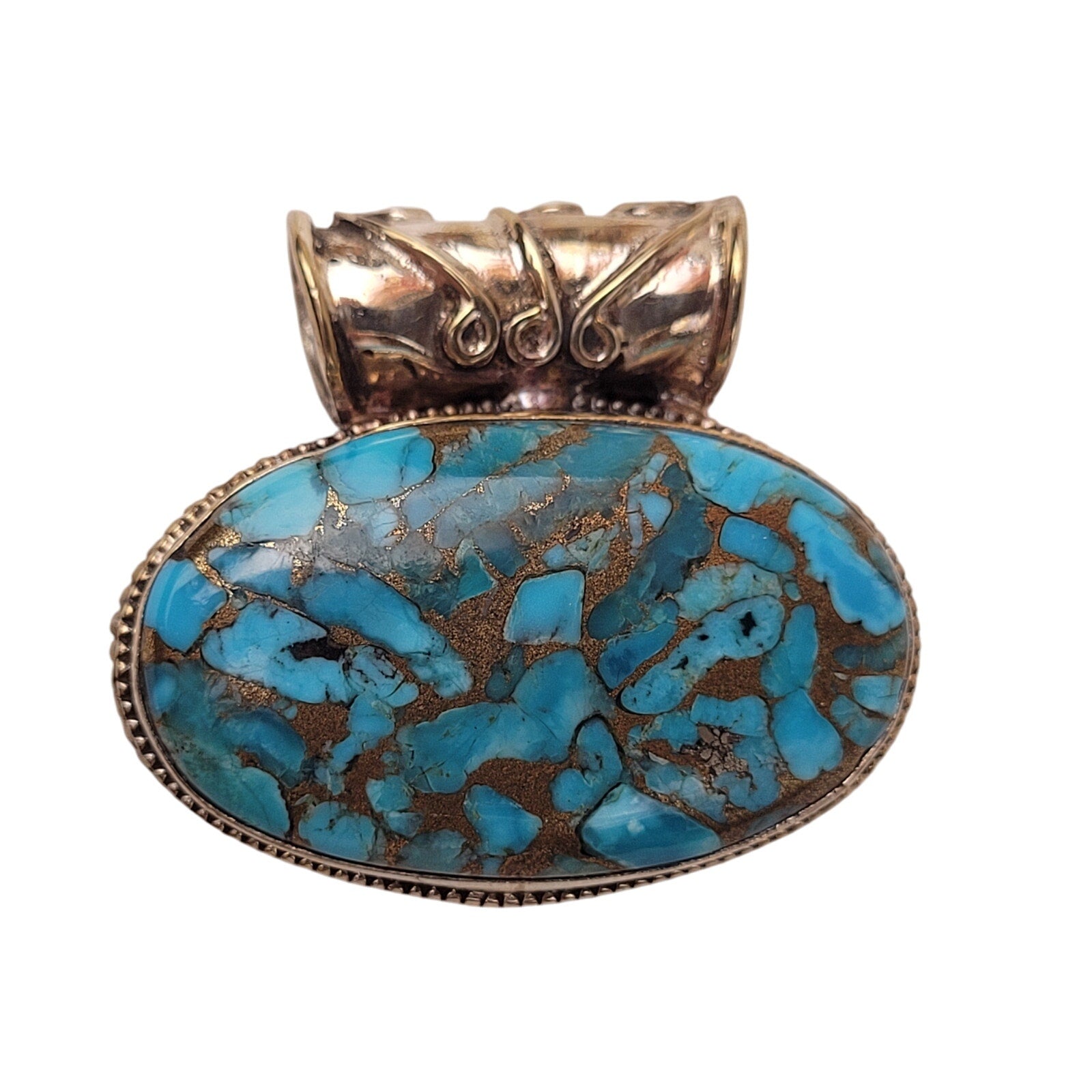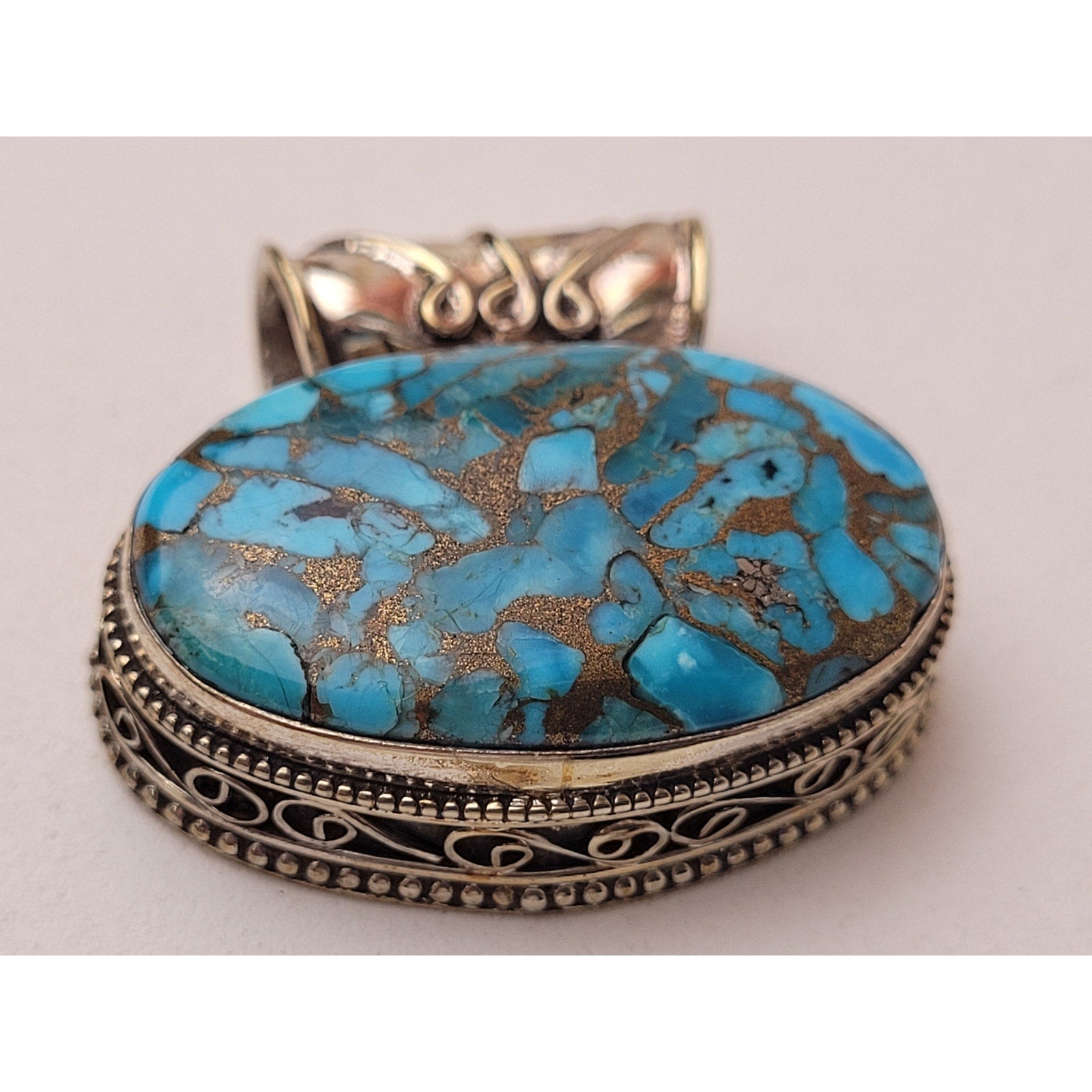 Calling all bead enthusiasts or lovers of semi-precious stones and sterling silver! This is a lot of three beautiful charms - each with their own character. The mother of pearl/abalone and amethyst charm measures 2 1/2" long, the mother of pearl oval measures 2" long, and the natural blue copper turquoise measures 1 1/8" in length and 1 1/4" in width.