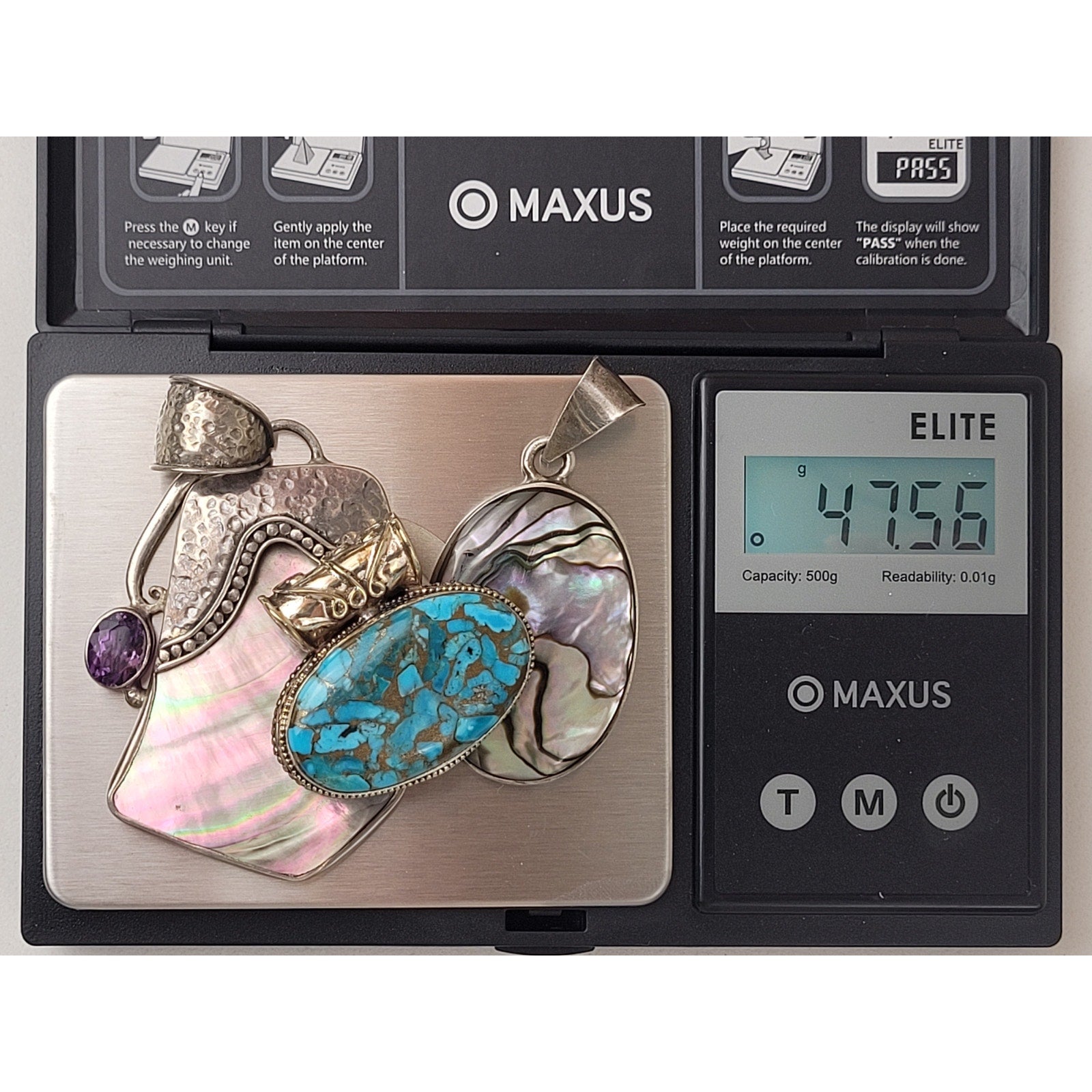 Sterling Silver Semi-precious Stones Pendant Lot of Three 47.6g