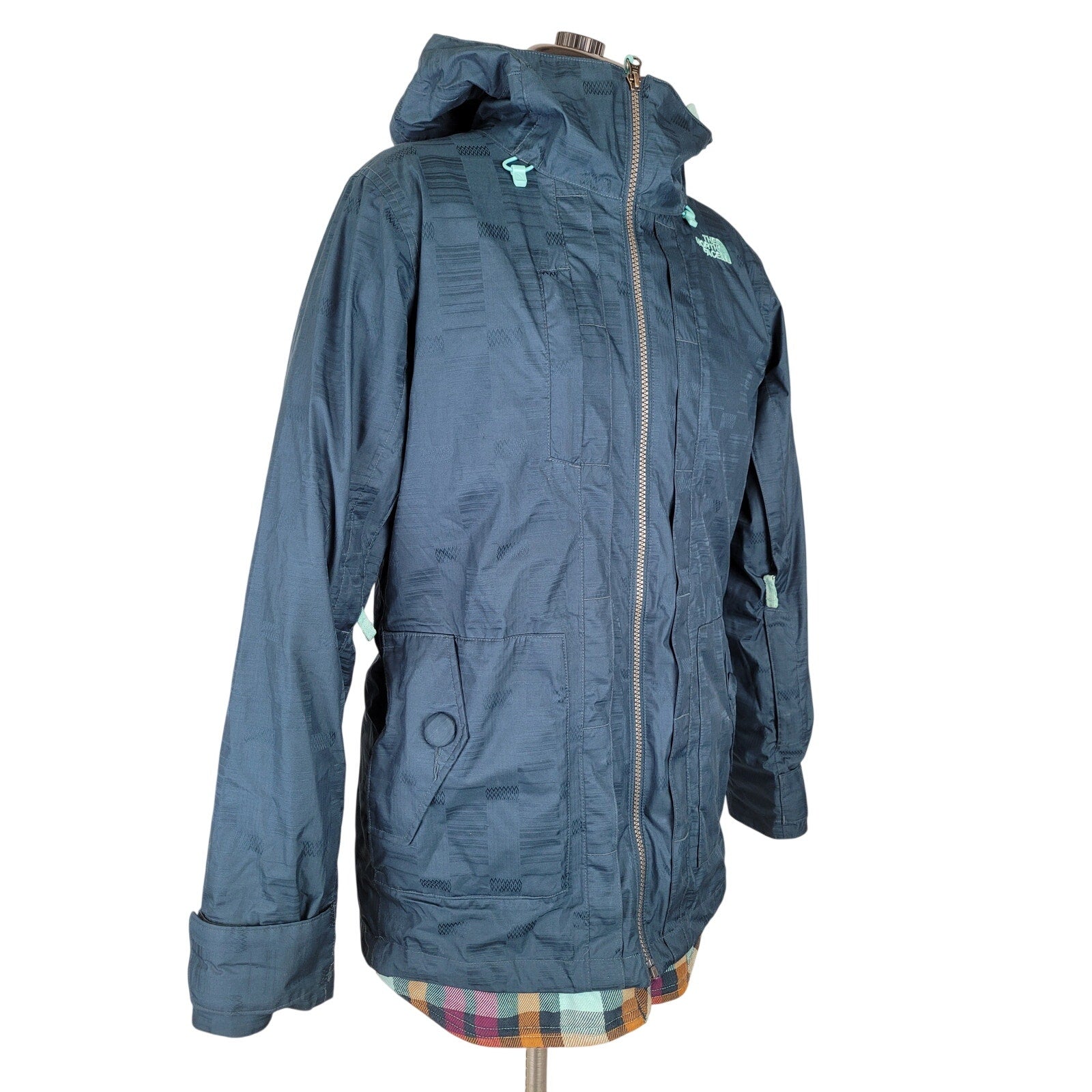 Brace yourself for the wind, rain, and snow in style with this The North Face ski/snowboard jacket and flannel shirt set. The flannel shirt is lined with a waterproof fabric in case you'd like to take off that jacket for some spring skiing. The shirt also attaches to the jacket with tabs, so you can keep the two together. Both are a women's size small.