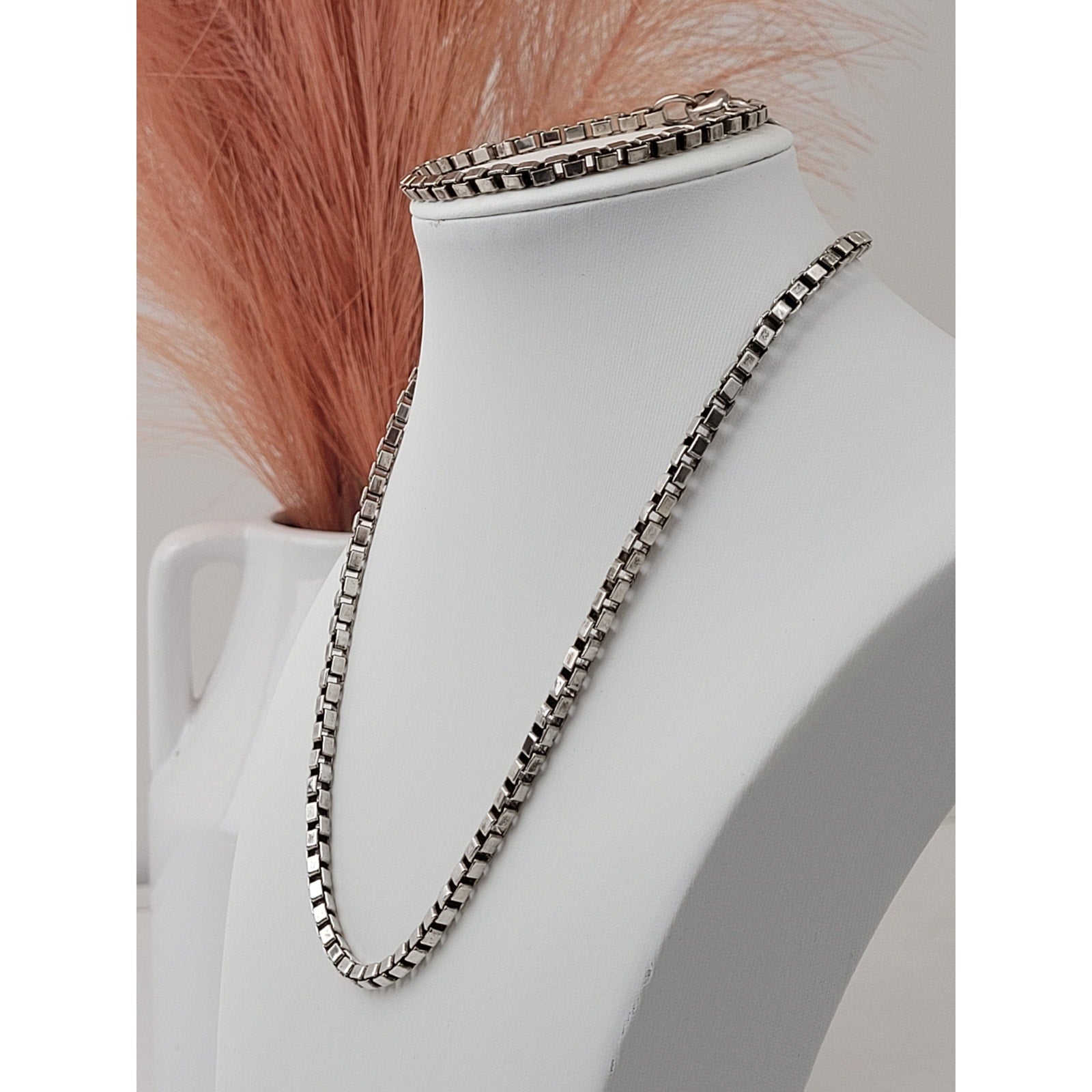Tiffany & Co. Silver Box Link Venetian Chain Bracelet 7.5" & Necklace 16.5” Set