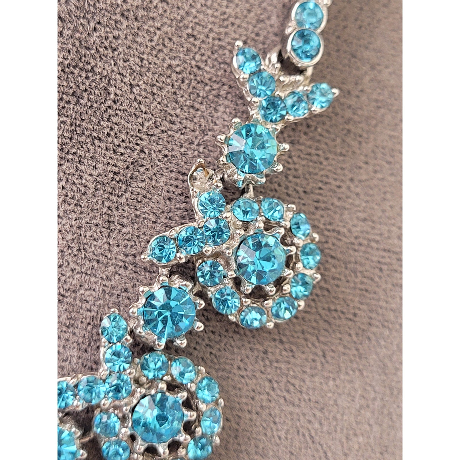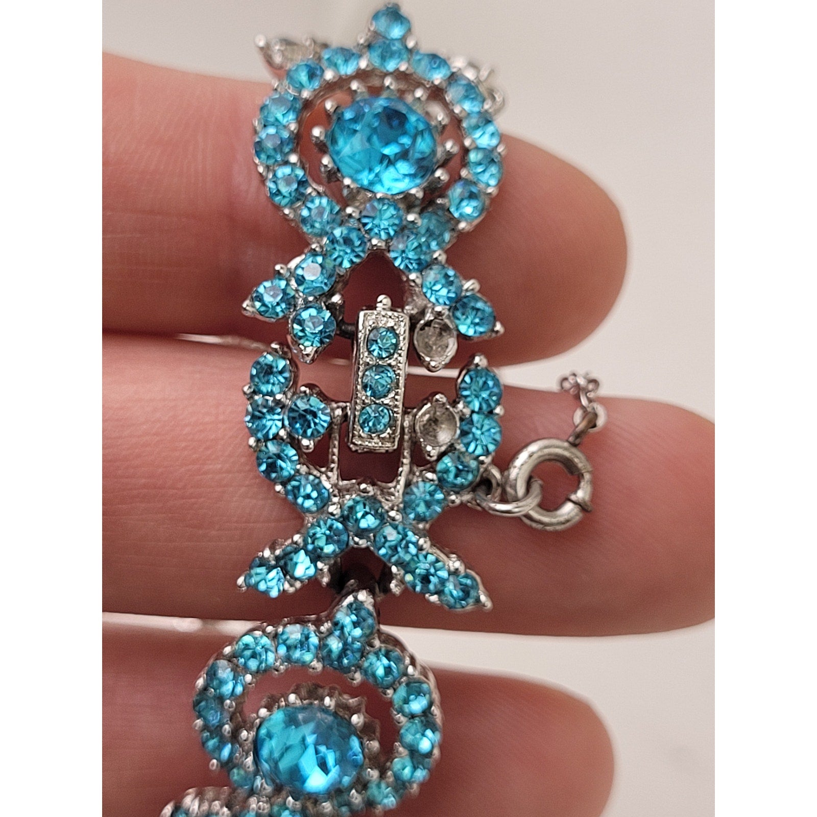 Vintage 1950s ORA Blue Rhinestone Necklace, Bracelet, & Earrings Set