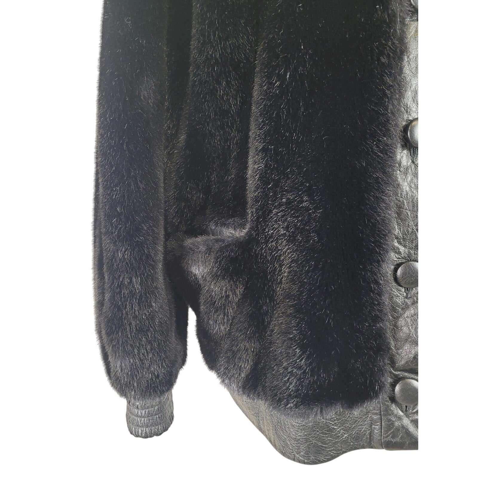 Bring vintage fashion forward with this gorgeous Adolph Shuman for I.Magnin faux fur jacket from the 1970s-80s. This unique piece features a luxurious faux fur body and stylish leather trim, perfect for adding a touch of retro glamor to any outfit. Made in England.