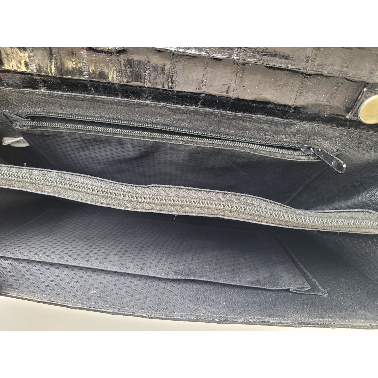 This vintage eel skin black convertible shoulder clutch bag is a stylish and versatile accessory perfect for various occasions such as weddings, parties, or casual outings. The rectangular shape, snap closure, and black shoulder strap add a touch of elegance to the medium-sized bag. With an inner zip pocket and a classic 80s Korean retro theme, this patent finish clutch exudes a timeless charm. Crafted from exotic eel skin material, this bag is a unique and eye-catching addition to any wardrobe, making it a standout piece for any fashion-forward woman.