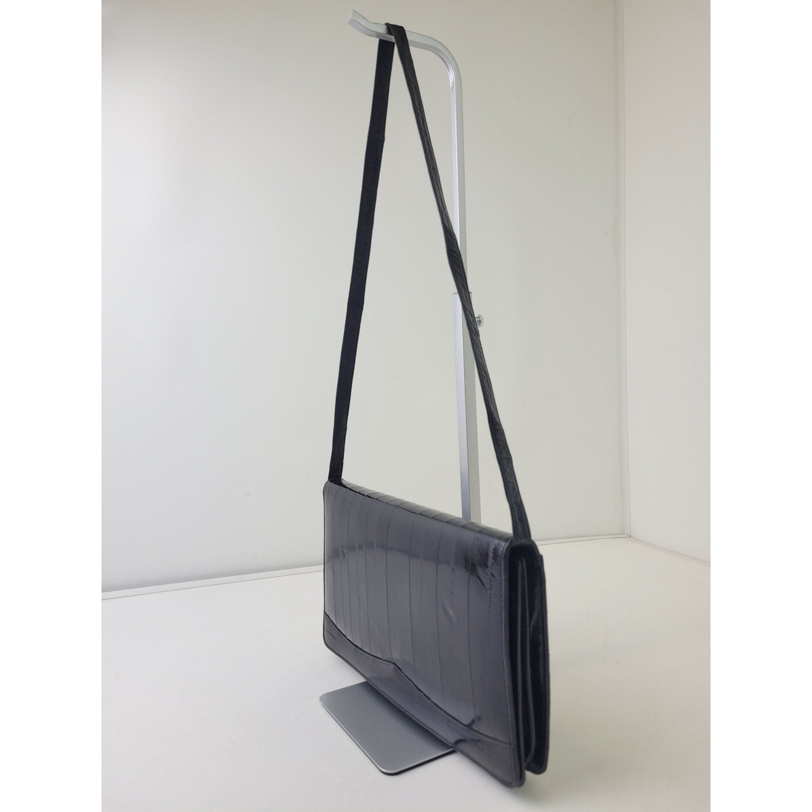 Vintage 1980s Black Eel Skin Convertible Clutch Shoulder Bag