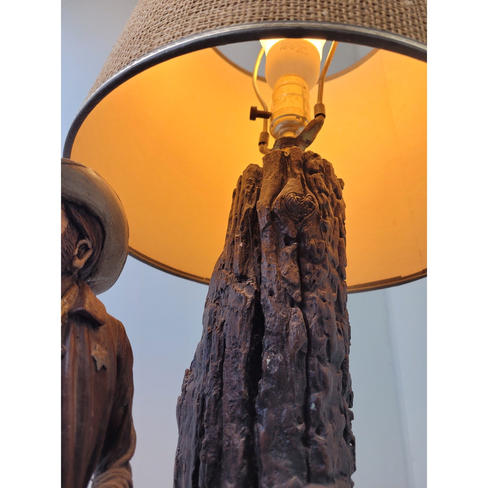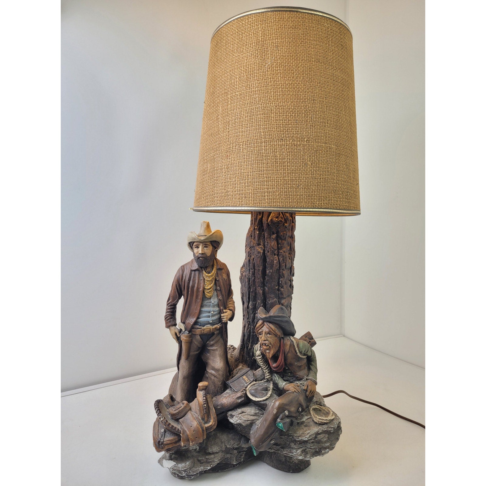 Vintage Apsit Bros Cali Western Cowboy Outlaw Chalkware Table Lamp & Shade