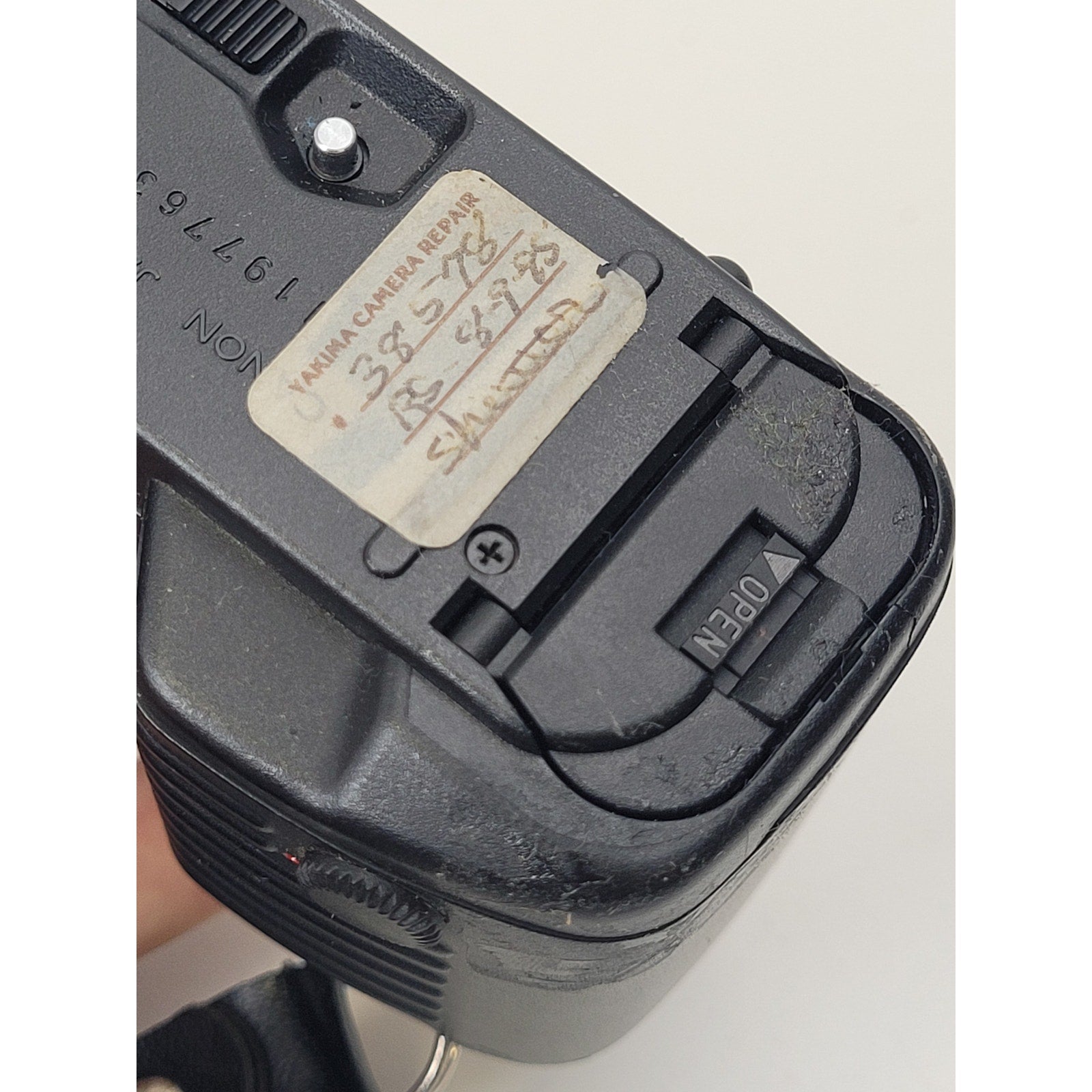 Condition: The camera has not been tested to ensure functionality. There is a crack in the camera where the batteries are placed. It will require some tape to keep it secure. Otherwise, it appears to be in good vintage condition.