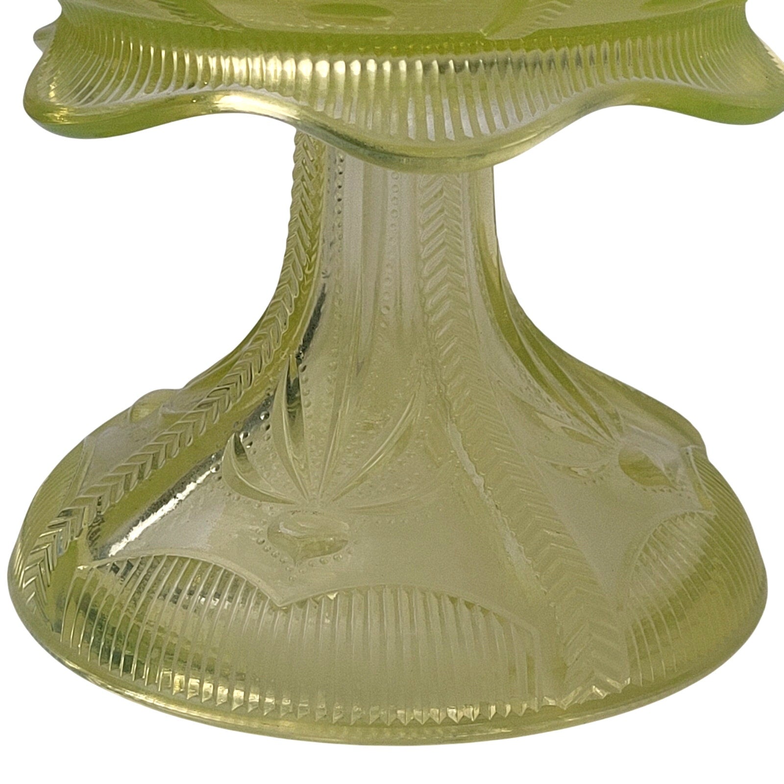 Vintage Fenton Vaseline Opalescent Glass Cactus Compote