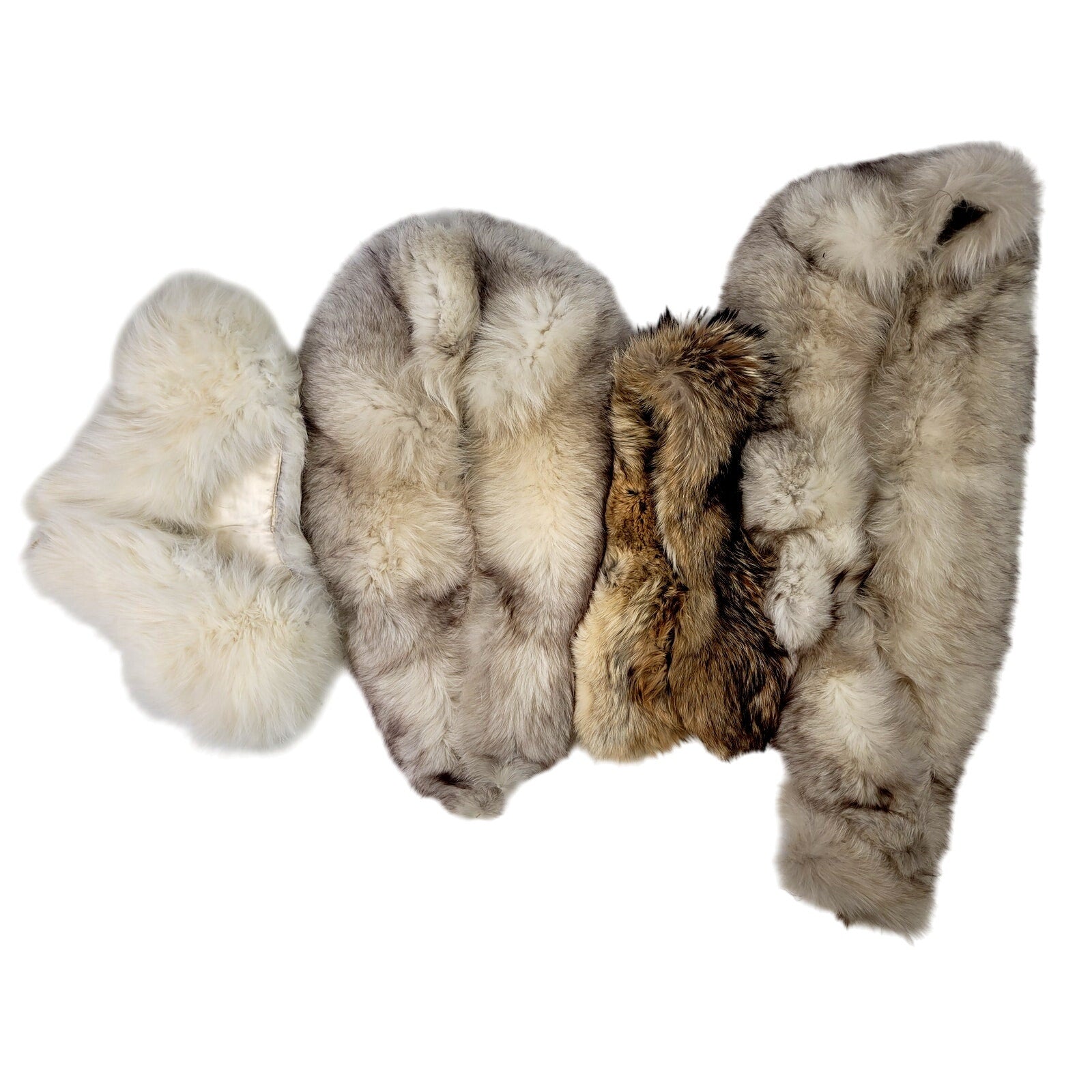 Elevate your vintage style with this exquisite lot of four fur collars and trims! Each piece exudes timeless elegance and unique character, perfect for adding a touch of luxury to your favorite coats, jackets, or crafting projects. Whether you're a vintage fashion enthusiast, a creative designer, or simply someone who appreciates the finer details, this fur collar and trim lot is sure to inspire. Fur types unknown. Possibly fox?