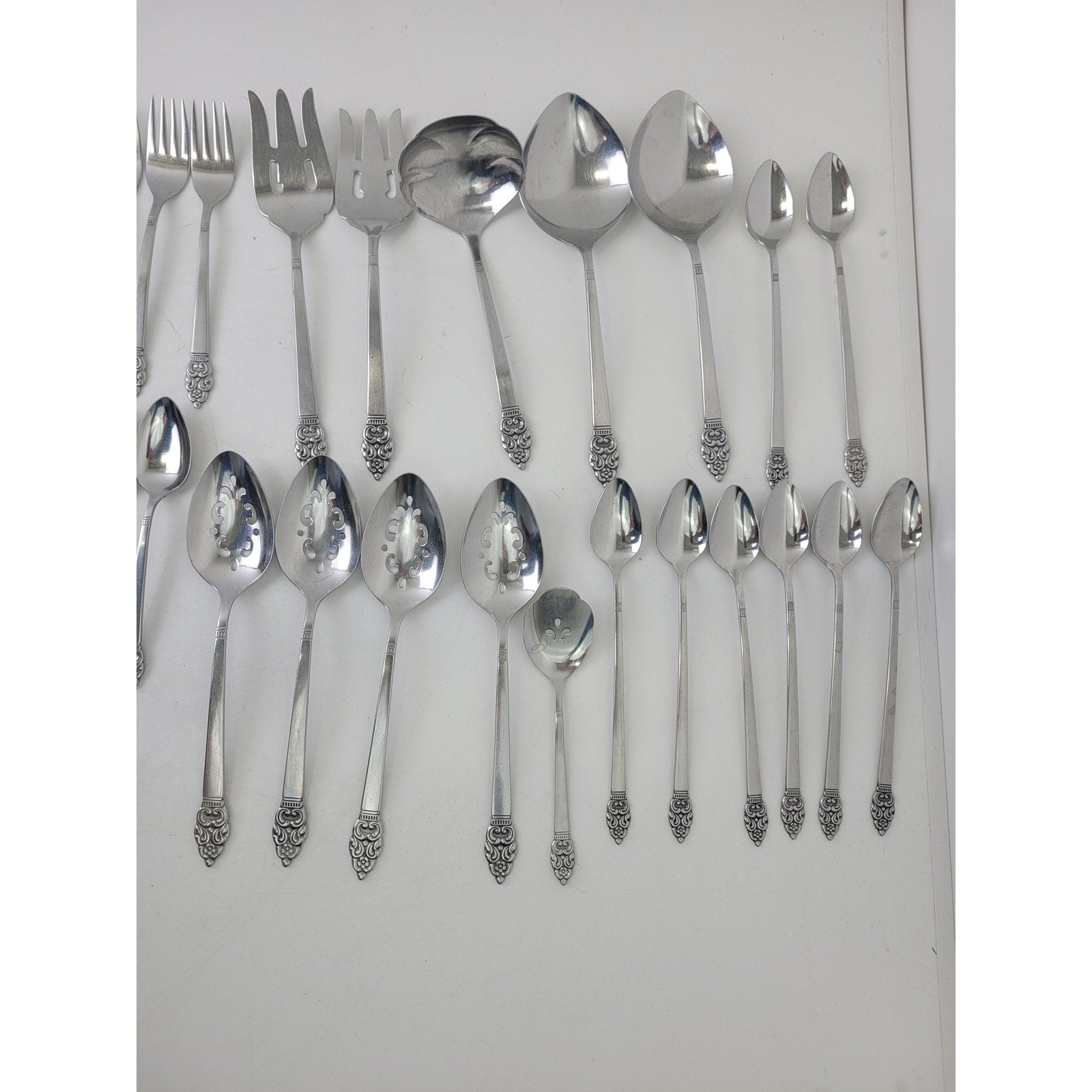 Vintage Oneida Community Stainless Nordic Crown Flatwear Set of 76. The set includes: