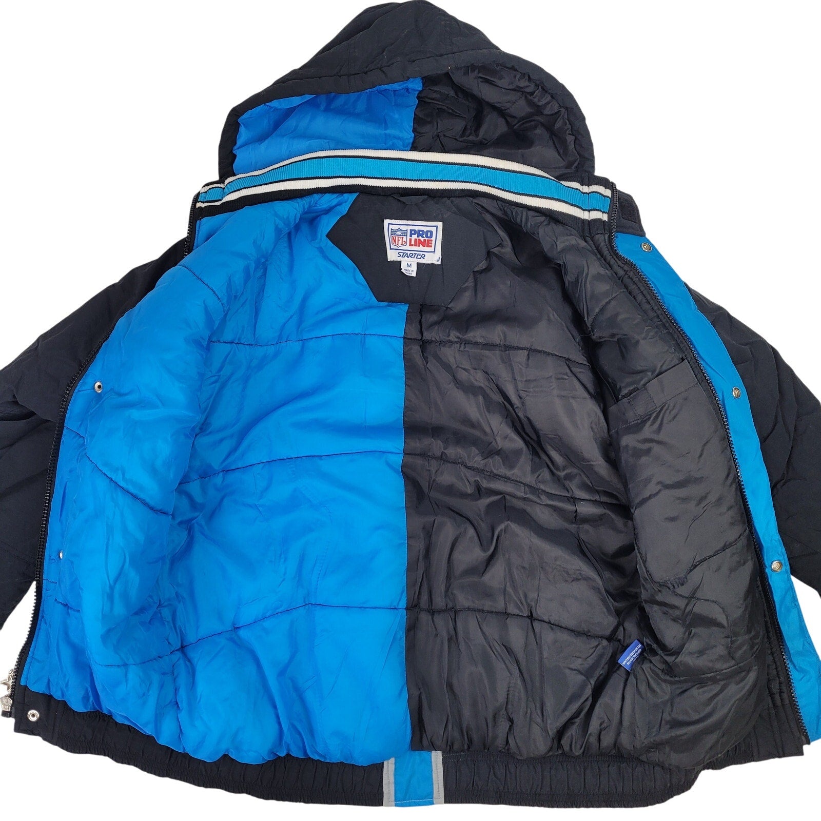 VTG 90s Oversized Carolina Panthers Starter Jacket Pro Line Hooded Men's Sz M