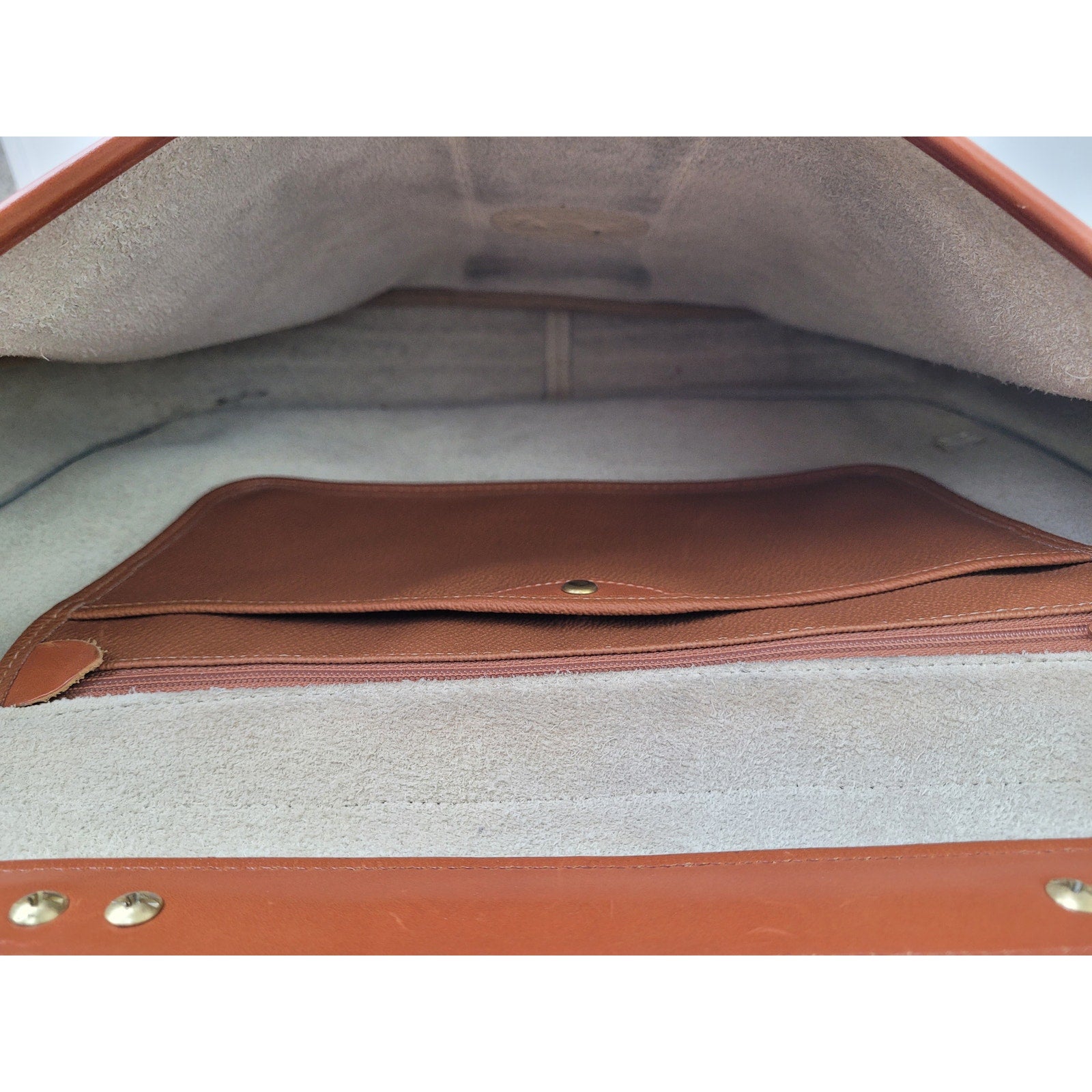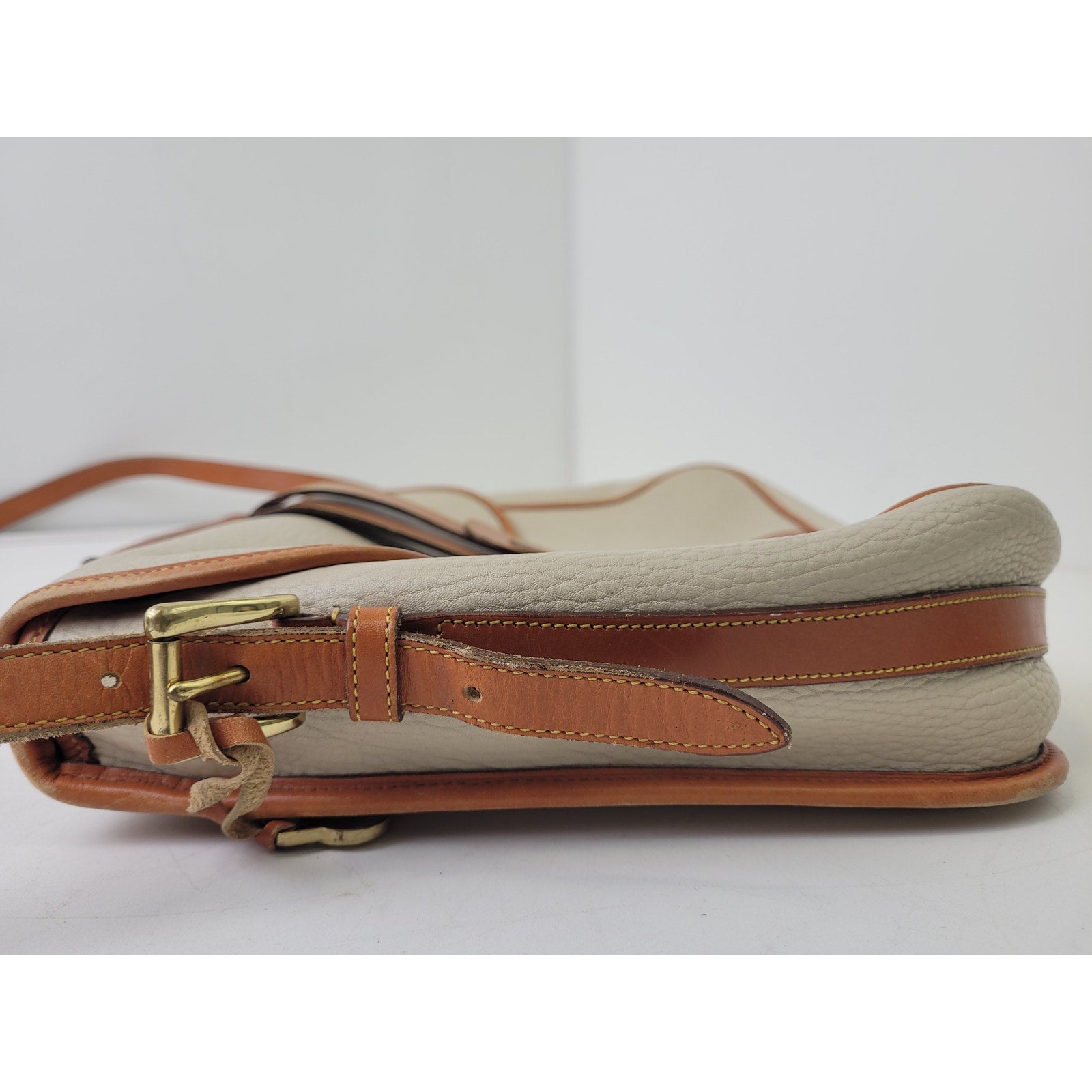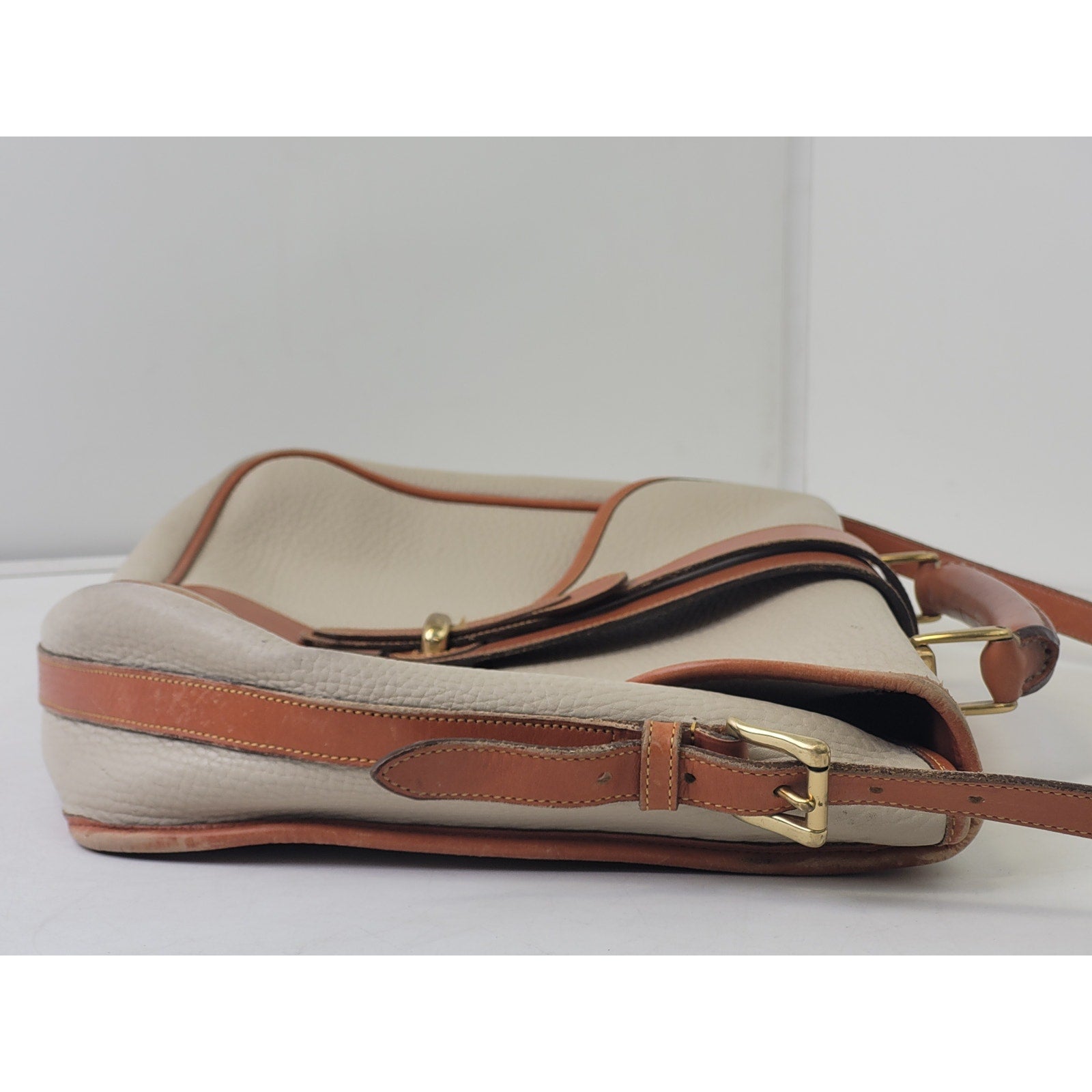 VTG Dooney & Bourke Large Equestrian Flap Bag Briefcase in Bone & British Tan