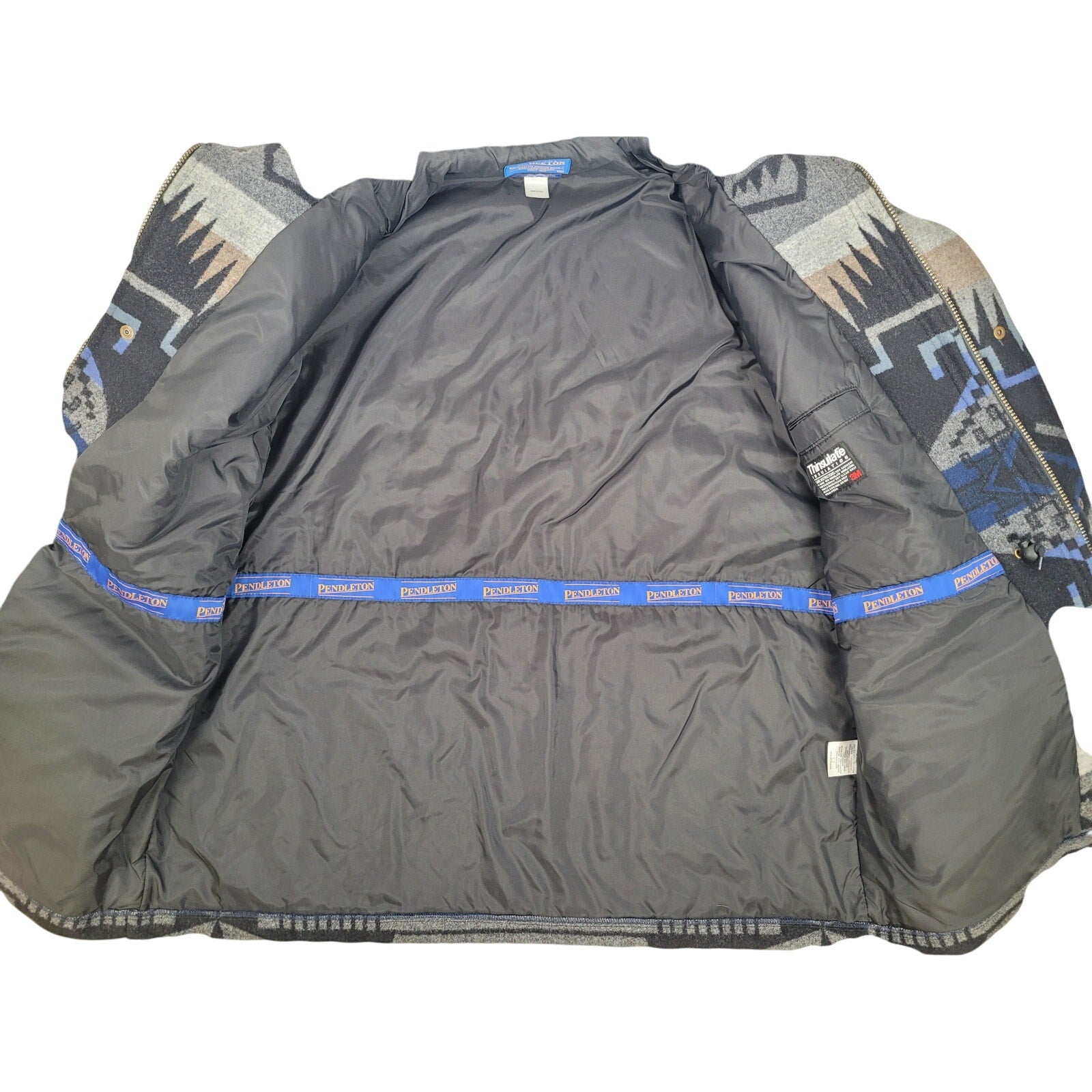 Featuring a unique Southwestern Aztec design and Thinsulate insulation, this Pendleton High Grade Western Wear wool jacket is perfect for staying warm and fashionable. It is a size XL, great for anyone looking for a blend of classic style and comfort.