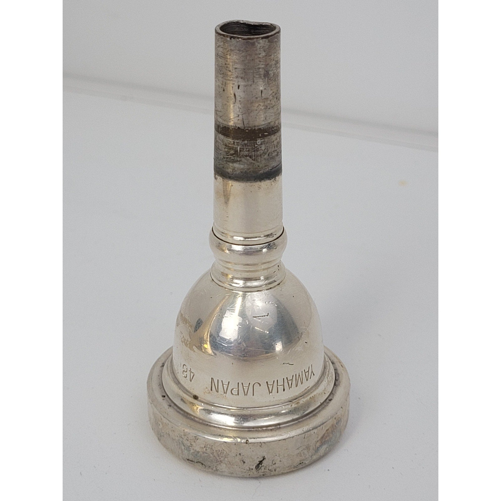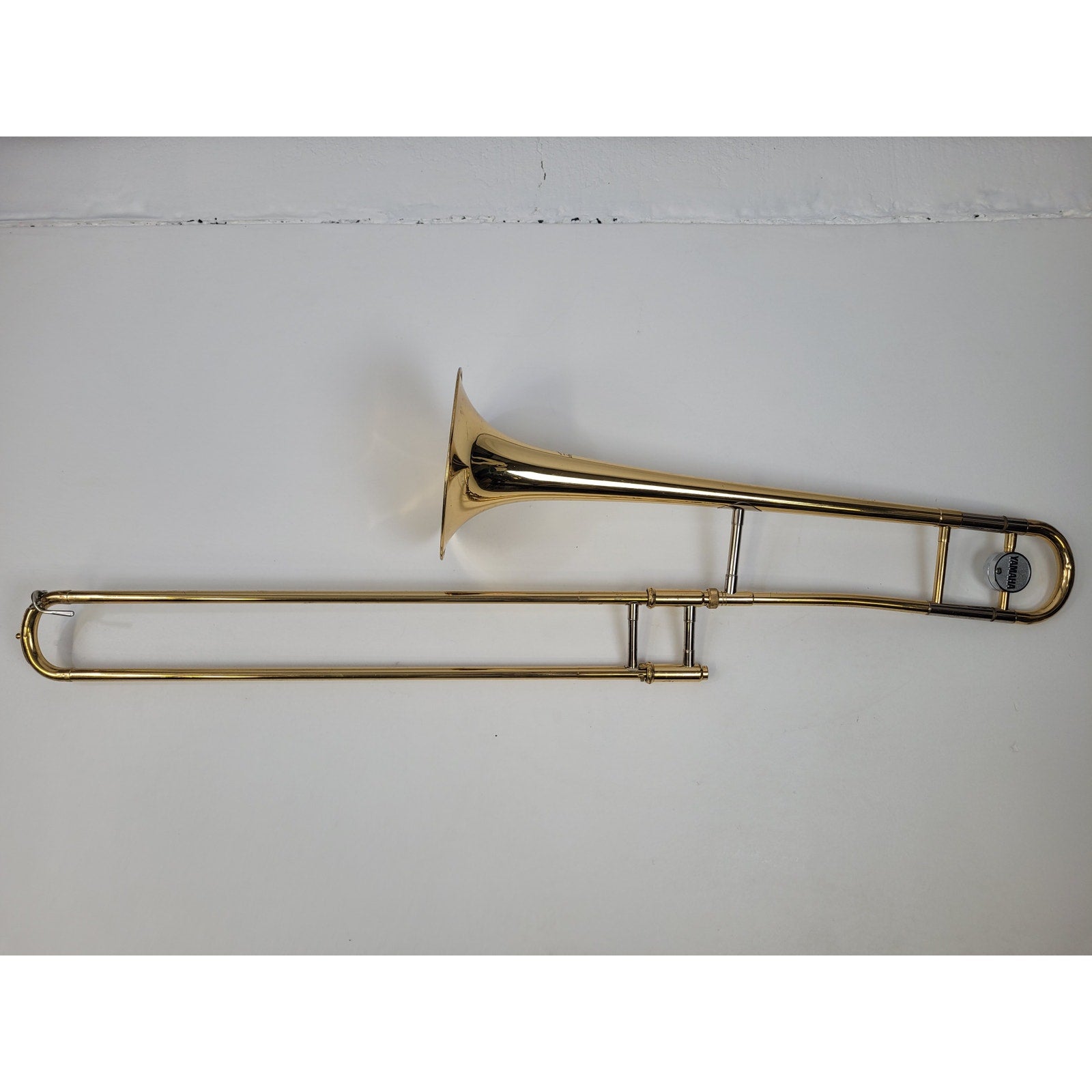 It has some minor dings and scratches to the gold-tone finish, but the slide moves freely. Please see photos for condition. Includes case, mouthpiece, and slide lubricant.